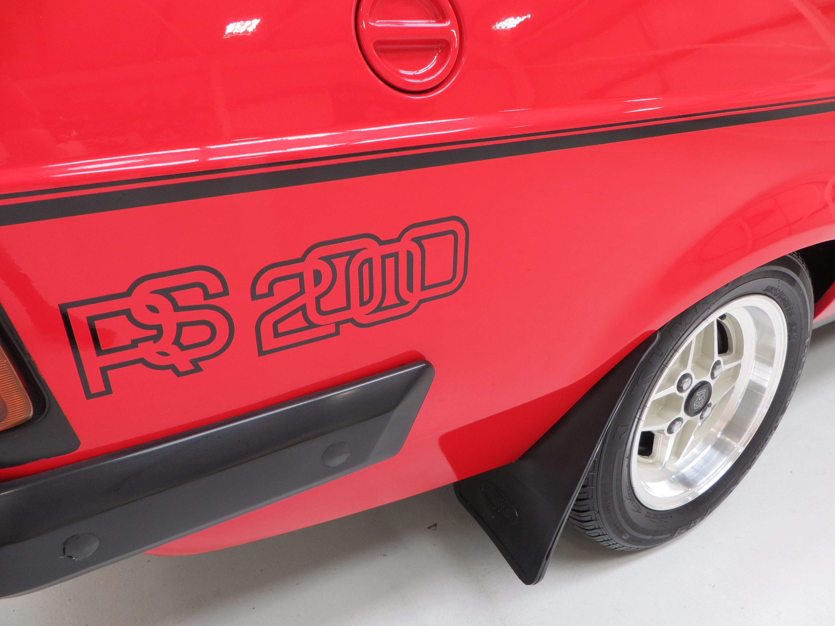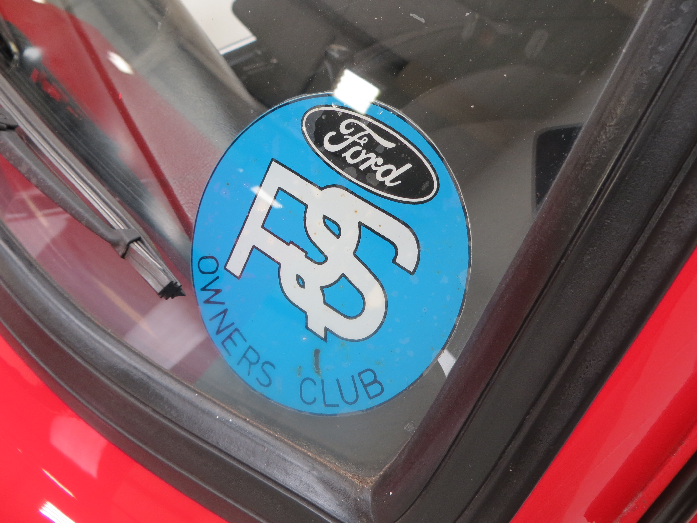 Polyurethane front end incorporating four Cibie quartz halogen headlamps, front air dam, rubberised tail spoiler, twin bodyside coachline, RS2000 decals, black door mirrors, laminated windscreen, hazard warning flashers, heated rear window, separate fuel, water temperature and oil pressure gauges, padded sun visors, two-speed heater, aeroflow ventilation with eye ball vents. RS Custom features; Recaro front seats with fishnet headrests, centre console, glovebox, quartz clock, remote control drivers door mirror, bronze tinted glass, full trimmed door cards, cut pile carpeting, vanity mirror, alloy road wheels. Dealership accessories; Ford mud flaps, rear seat belts.