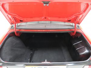 The interior of this example has remained absolutely original in every respect. The Black fabric (code A8) to the Recaro ‘fishnet’ front seats and rear bench still wear the original coverings which will require a re-trim for those seeking perfection. This task thankfully can be undertaken by renowned and trusted experts, Aldridge Trimming Ltd to factory specification. The fascia and undamaged padded dash top houses fully functional gauges and rocker switches and the original leather bound three spoke steering is undamaged. The heater fan is functional on both speed settings but the clock has stopped. The cut pile carpets and fully trimmed door panels are in excellent condition and Ford labels can still be seen on the seat belts. The headlining is perfect. A classic Ford interior displaying wonderful originality.
