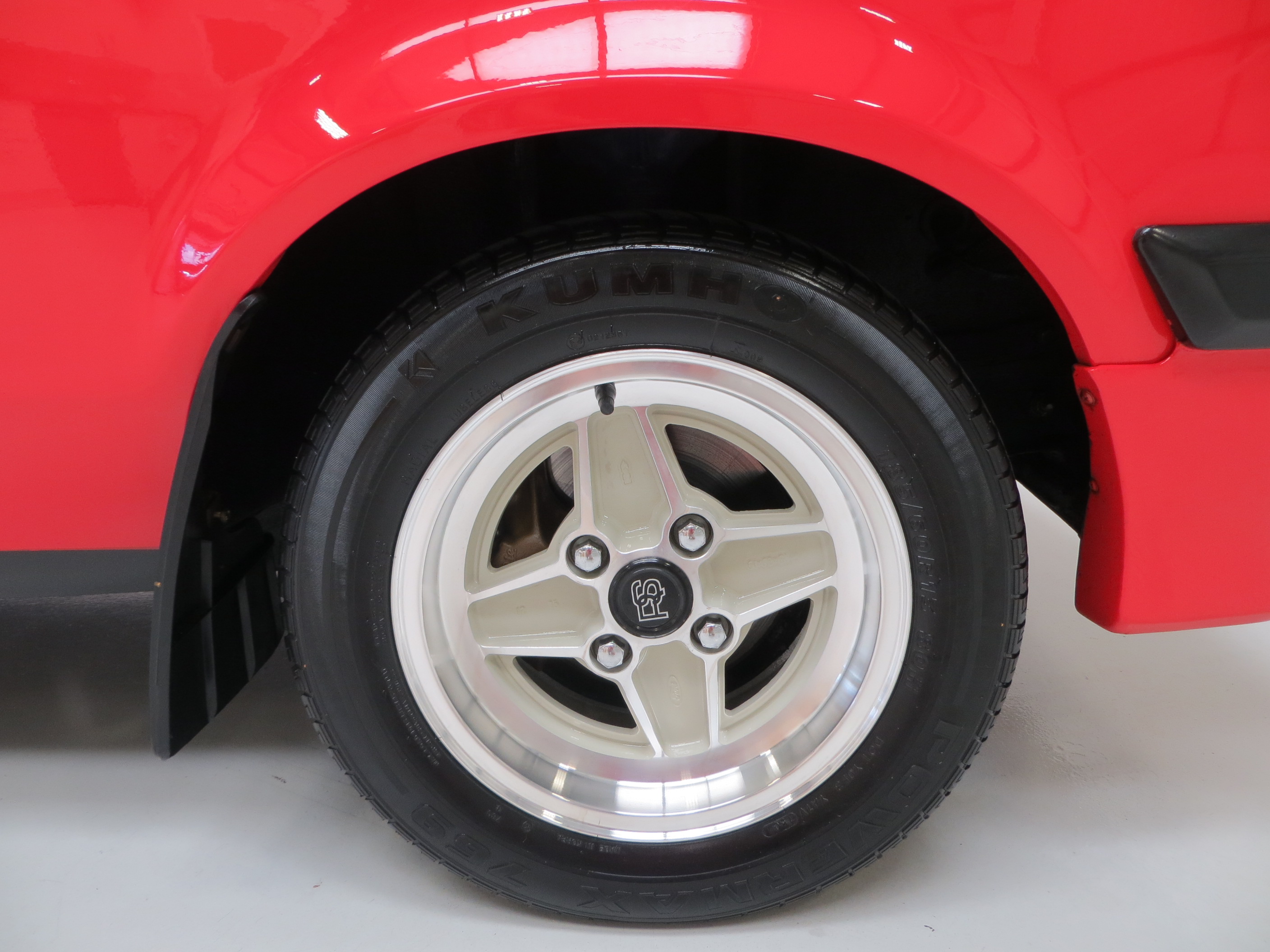 Genuine Ford RS alloy road wheels have just been refurbished to perfect standard with matching quality Kumho 185/60 R13 tyres showing plenty of tread. The spare alloy wheel is housed in the boot area alongside the original jack. Vacuum servo assisted front disc brakes with rear drums brakes offer fair braking but fall short of modern standards.