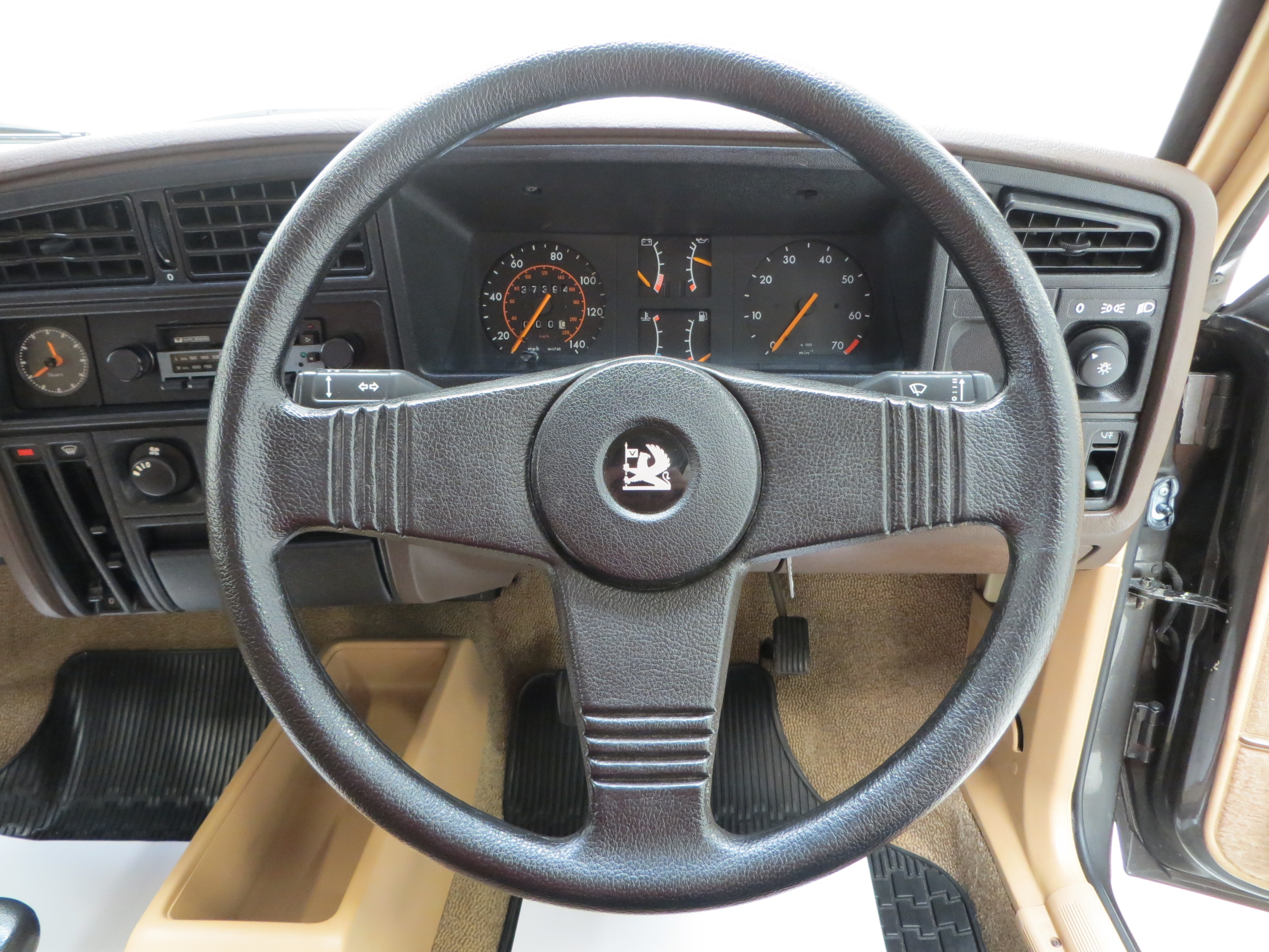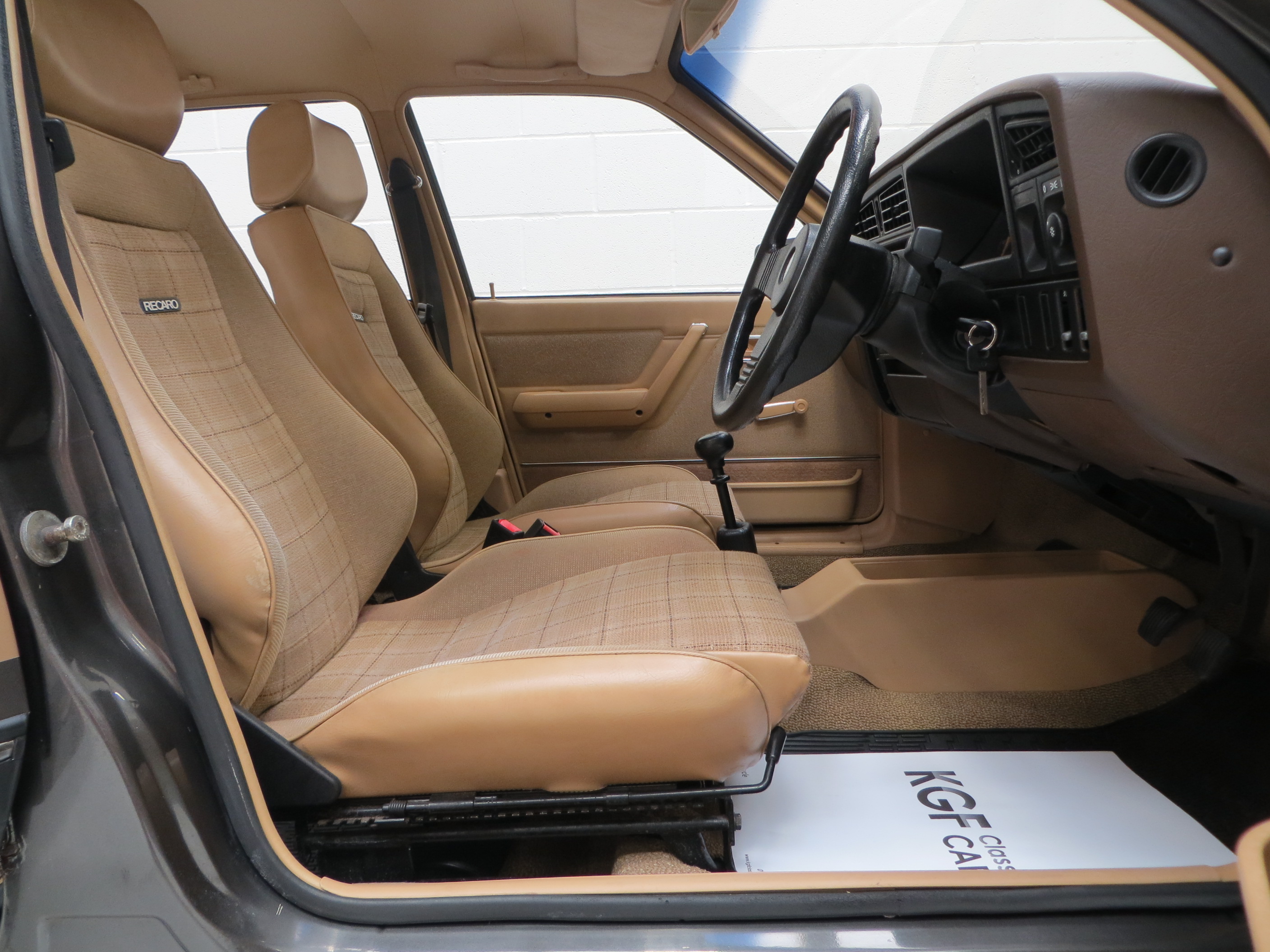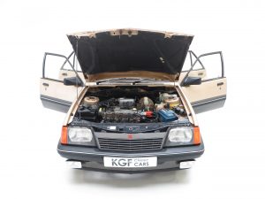 A clean, functional and retro Vauxhall interior is sure to delight fans of the Griffin badged cars! The original Highland Check cloth trim in beige colour scheme is incredible and every inch commensurate with the cars low mileage credentials. The upholstery is clean with only very minimal wear to the sporting Recaro driver’s seat. The matching colour scheme door cards and headlining are pristine and the carpets are beautifully preserved having been protected from new by tailored Vauxhall rubber floor mats. All functions and controls operate perfectly including the Phillips push button mono stereo cassette. The dashboard and internal trim pieces are exceptional with no cracks or damage whatsoever and the rear parcel shelf is free from speaker cut outs. Prominent natural veins to the steering wheel and gearknob are an obvious trait of such a low mileage example. A true time warp interior complete with period scent, worthy of any show stand.