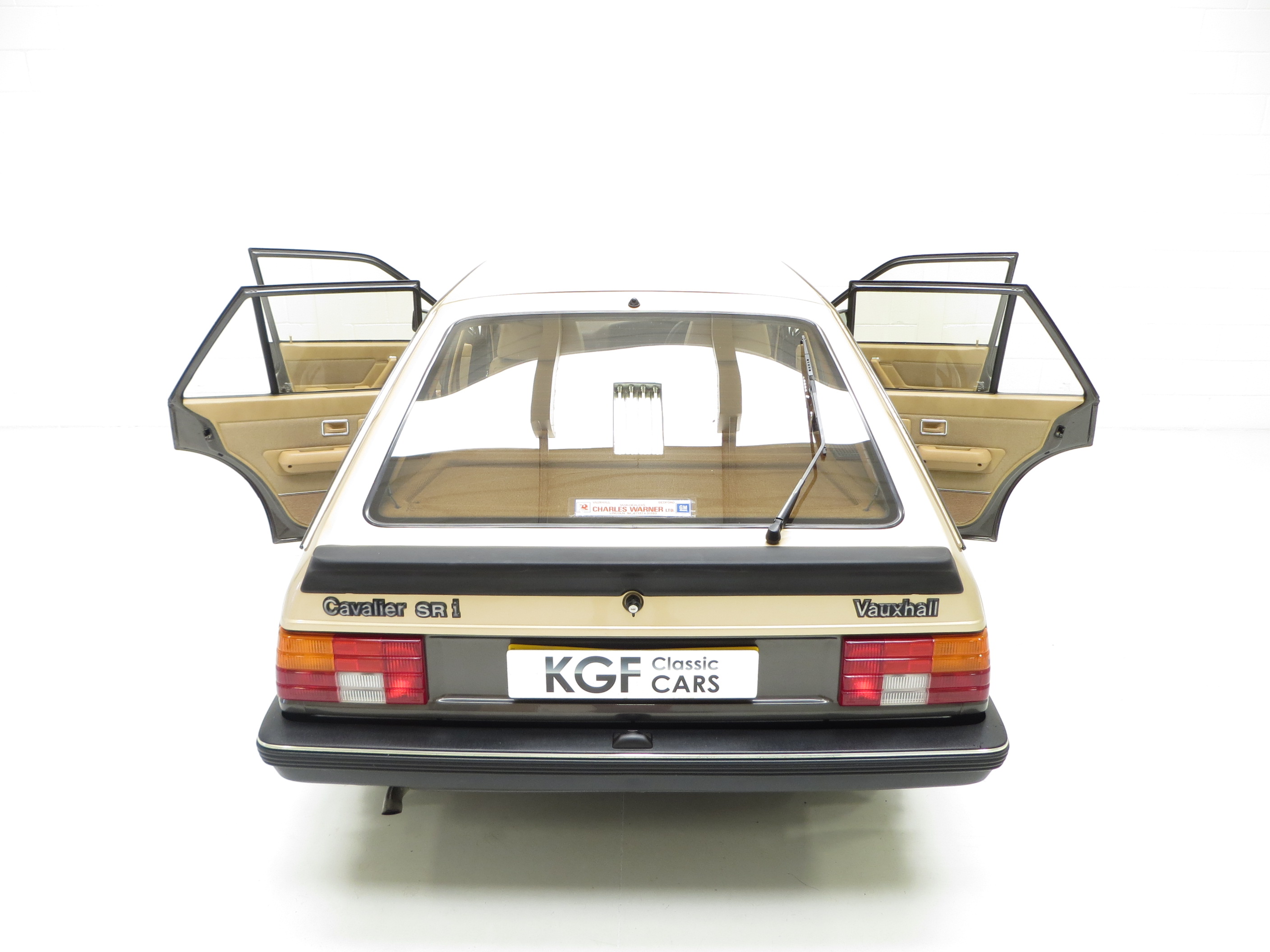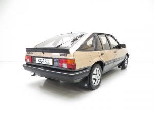 This incredibly rare Vauxhall Cavalier Mk2 SRi was once a common sight on UK roads but now represents a hugely nostalgic piece of sporting Vauxhall history. This early SRi on an A prefix in Hatchback guise is finished in White Gold/Anthracite (code E421 & 303), a two tone paint scheme unique to the SRi model. The paintwork presents very well with a bright polished shine, however, areas of paint rectification undertaken by the previous keeper although not unsightly are not to professional standards. All factory panels are straight apart from one which has a small ding and inspection of the underside reveals the structural integrity. Factory stampings are clearly visible along the inner boot shuts. All glass, lights, badges and trim sections are in fantastic order and this totally unmolested example even retains its supplying dealer plates and rear screen sticker! Hugely sentimental to many individuals who owned examples in the 1980’s.