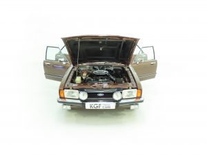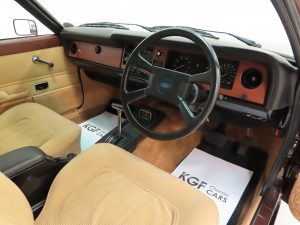 Originally supplied with the 2.0 Pinto engine, Superspeed Conversions Ltd undertook the conversion from new with a 3.0 ‘Essex’ V6 unit developing 138bhp to achieve a quoted top speed of 120mph while 0-60mph is claimed at 8 seconds! The engine bay is beautifully clean and original with all factory fitted plates and labels as well as the Superspeed stickers and correct chromed rocker covers and air filter cover. The factory optional automatic gearbox is uprated by Superspeed and a full stainless steel exhaust system is supplied and fitted by P D Gough in 1994 at a cost of £500 to mirror the original precisely. The performance and sound of the car is simply awesome, a real wolf in sheep’s clothing!