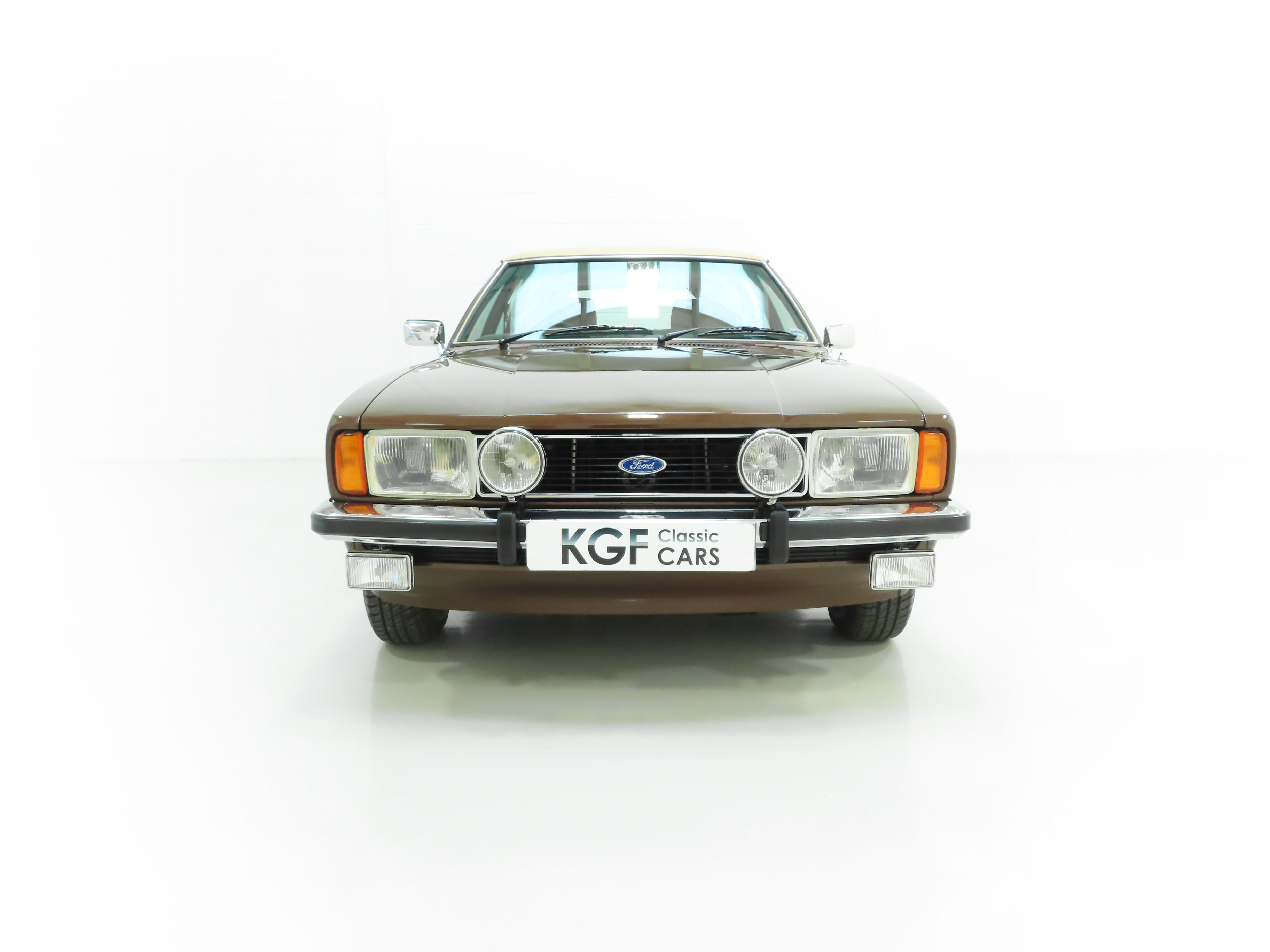 This exceptionally rare Mk4 Cortina Estate is finished in factory optional and original Roman Bronze Metallic, (Code S7), and looks simply sensational. Verified as original and unrestored, this beautiful car boasts a deep uniform shine throughout and all factory panels are in remarkable condition with the rear wheel arch lips still having the factory stampings! The bodywork is pin straight and all shut lines are uniform, and the usual Ghia accoutrements and chrome brightwork is immaculate. The original Tan vinyl roof is fully intact with no raised areas and only slight cosmetic wear to the sunroof bead is worthy of mention to the otherwise superb condition. All factory glass as well as the Ford/Carello light fittings, badges and supplying dealer number plates remain. An exceptionally rare find in factory guise and regarded as the only known Mk4 Cortina Estate to receive the Superspeed high performance conversion.