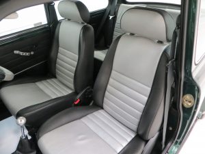 Cooper Sport 13in alloy wheels with the correct green Mini centre logo caps remain in fantastic order and are still shod in matching Dunlop SP2000 175/50 R13 tyres. Although ample tread remains and original fitment is desired by collectors, due to age, a change is recommended. The servo assisted brakes incorporating front discs and rear drums bring the car to a prompt and assured halt.