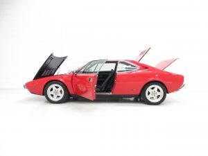 From a total production of just 2826 only 587 were RHD models. This late Series 2 example was registered on the 21st December 1978 by UK authorised Ferrari Main Agents, Cooper Car Sales Ltd Leicester. The first owner, Mr William Monks of the Monks Group Builders Merchants, repurchased the car from the second owner after regretting the sale! Since then a further five custodians have cherished the car with the fourth, David Taylor, acquiring the vehicle in 1983 and owning for 26 years only relinquishing on his death in 2009. During his lengthy ownership he had the car fully restored by Dorchester Auto Engineering and a detailed summary of the work undertaken, can be found in the comprehensive history file. The current owner, Mr Parmenter, purchased the vehicle from Ferrari specialists, Furlonger, who know the car intimately having sold it on two prior occasions and being responsible for its routine servicing and belt changes along with Foskers, the UK’s oldest independent Ferrari specialist. Mr Parmenter’s fixation with historical content includes correspondence with prior owners, a full comprehensive breakdown together with supporting invoices and bills of expenditure year on year from 1983 to current day. This car also features in his book, ‘My Half Century Love of the Motor Car 1965 – 2015’. All handbooks, service books, spare keys and manuals are present. A magazine feature is also included along with an original sales brochure. A video of the car on the YouTube Channel, Seen Through Glass, can be viewed by clicking here at 5.35min.