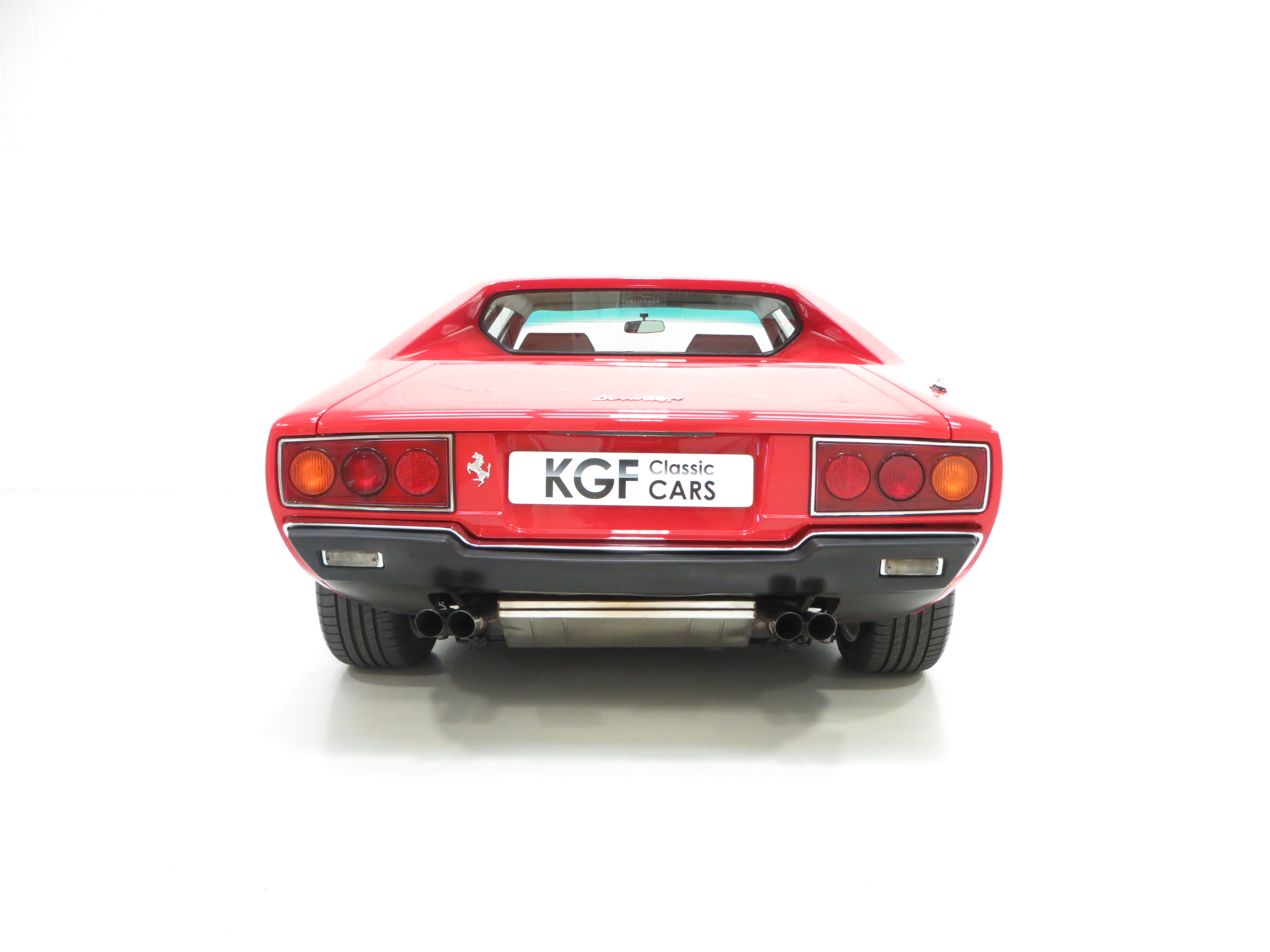 Tubular frame chassis, steel bodyshell, retractable headlight pods, chrome-edged bumpers, front and rear opening panels, ‘cavallino rampante’ and Dino badging, iodine fog lights, power windows, twin Fiamm horns, lockable glovebox, full Veglia Borletti instruments, tell-tale warning lamps, intermittent wipers, Momo steering wheel, front and rear ashtrays. Factory Options; Air conditioning.