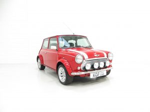 The original Mini warrants little introduction having gained iconic status and is widely regarded as amongst the most ground breaking and historically significant cars of all time. This very late example is finished in its original Solar Red and Old English White colour scheme (code WEN). The vibrant paint finish is simply stunning with a deep lustrous polished shine. All factory panels are straight and damage free with clearly defined seam lines. A new vehicle order form and sales receipt confirms the dealer option of a Union Jack roof decal and ‘John Cooper’ bonnet stripe signatures at a cost of £424.95, still immaculately attached. Even sharp eyed scrutineers will struggle to fault this example which is testament to the exceptionally low mileage covered under cosseted ownership, and only a tiny paintwork blemish to the scuttle panel can be detected. All trim sections, chromework, badges and decals are in prime order. The Quadoptic halogen lights, driving lamps and front fogs are original fitments and fully operate. A truly exceptional example.