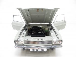 The optional sports road wheels remain in the correct silver with black infils. This Capri was manufactured with Goodyear radial tyres and the previous fastidious keeper with accuracy in mind has ensured that only the same brand should be fitted. The servo assisted brakes with front discs and rear drums bring the car up straight and true.