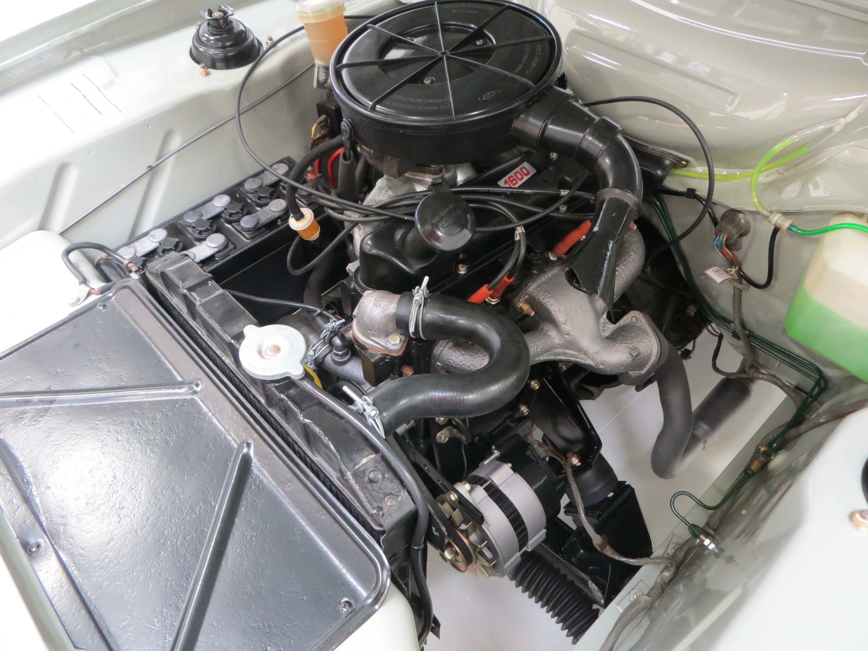 The standard 1600cc Crossflow engine offers modern traffic competing capabilities with a top speed of 96mph and 0-60 in 14 seconds. The spotlessly clean engine bay is strictly standard with genuine Ford Motorcraft service items and even the rocker cover ‘1600’ affixed at an angle, just as it left the factory! The correct oil fitted shock absorbers and strut tops also feature along with a genuine original Ford exhaust. A further unique item is the long and narrow Lincon battery sited on the left side of the engine compartment, specific to the auto models only whereby a revised battery tray design was required. The factory optional automatic transmission performs exactly as it should.