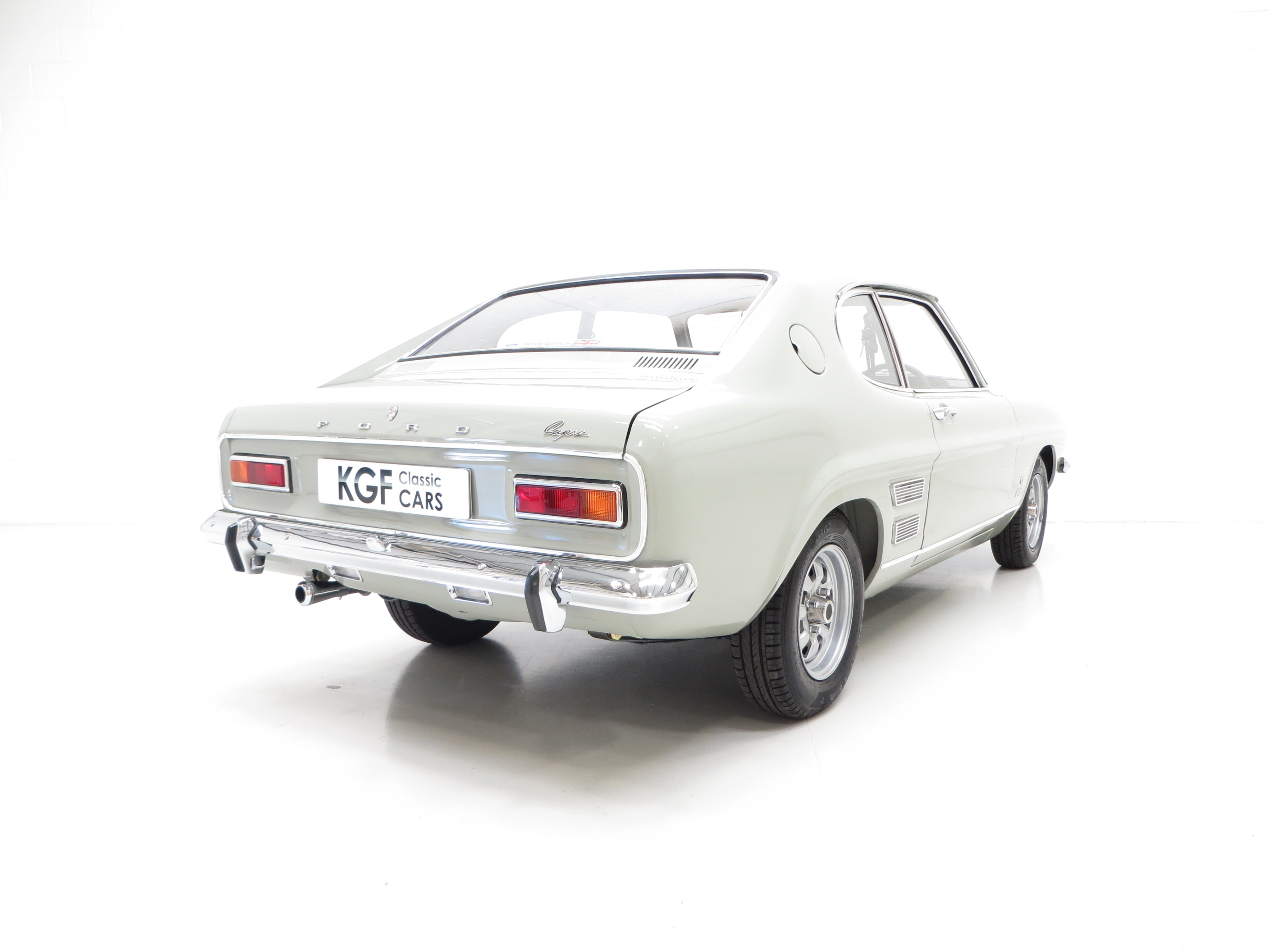 To state that this astonishing Mk1 1600XL won the Concours Mk1 trophy at the Capri National Day in May 2016 offers an insight to just how special this car is. Finished in its original shade of Light Grey (code D), Ford produced the colour for just six months from August 1971, and this is the only one known to the Capri Mk1 Owners Club. The paintwork is exceptional having been subject to a documented restoration including a fully detailed and painted underside, even down to zinc plated nuts, bolts and fixings. A beautifully smooth and polished shine is worthy of its praise from Concours Judges and original trim pieces such as the weather strips, rubbers and brightwork have taken preference over inferior aftermarket replacements. Incredibly, this example still wears its factory panels including the front wings displaying the unique upturn to the wheelarch edge as well as the original rear arches with factory welds visible. Custom Plan XL Pack specific features such as the irreplaceable fluted tailpipe trim and the twin reversing lamps below bumper have been retained for absolute accuracy. Unconditionally outstanding and one of the best existing examples.