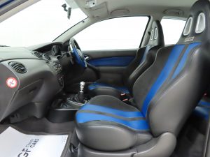 Fitted with the thumping Ford 2.0 Duratec RS four-cylinder 16v unit the power output achieved is 212bhp at 5500rpm and 310Nm torque at 3500rpm. The maximum speed is 144mph while 0-60 is dispatched in just 6.4 seconds! The engine bay is extremely clean with factory plates, stickers, labels and wing stamps visible. Correct for an earlier build car is the black throttle cable ‘trumpet’ grommet with blue collar. The sturdy Ford MTX-75 gearbox with a standard heavy-duty AP Racing clutch offers the ultimate rally road car experience.