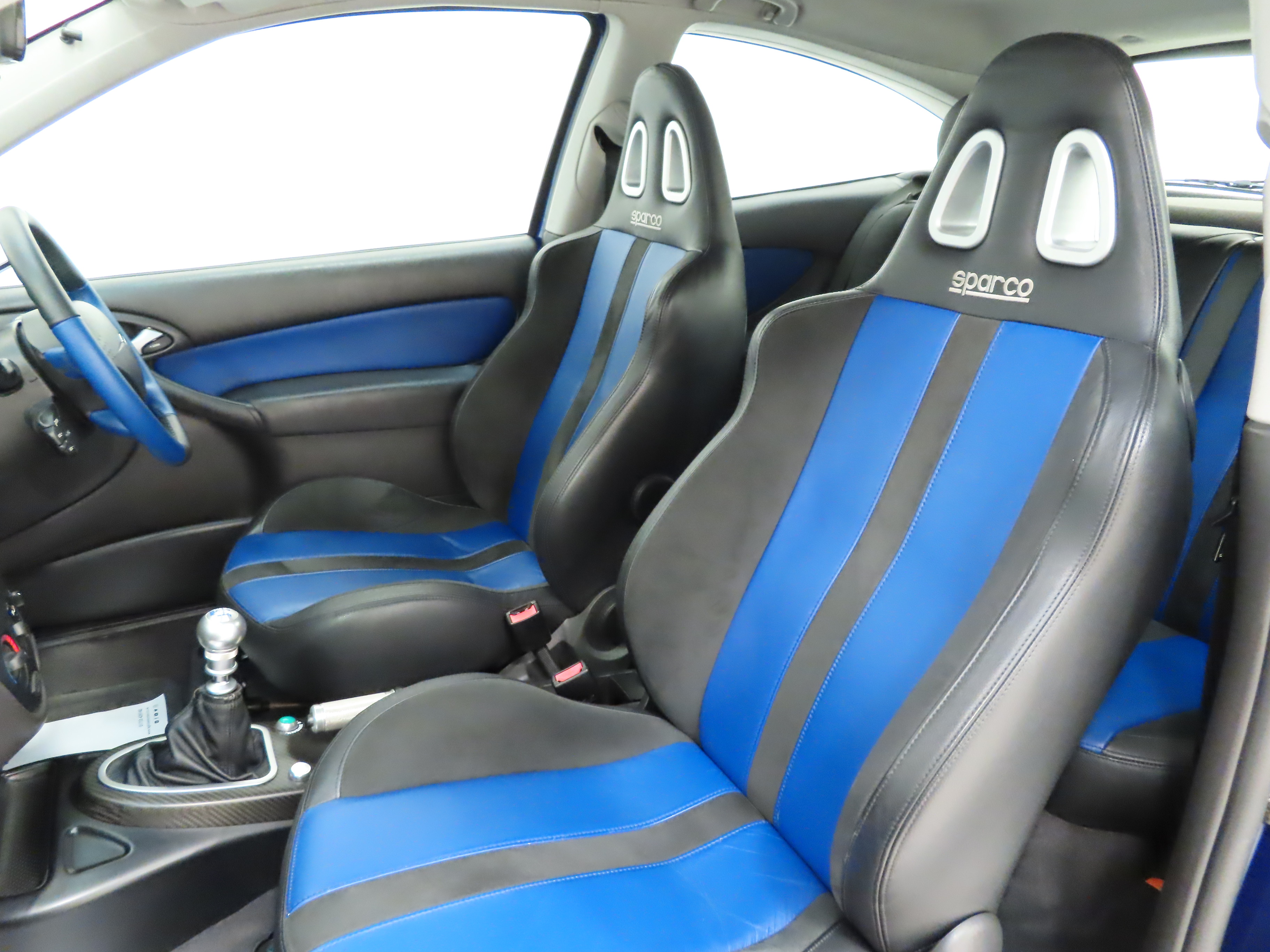 Computer optimised unitary welded steel body, rigid occupant safety cell, energy absorbing crumple zones, wider front and rear pressed steel wings, auxiliary air intakes, aerodynamic splitter and rear wing, mounted side sills, modified lower rear apron, driver and front passenger airbags, air conditioning, leather sports steering wheel with blue inserts, carbon fibre centre console with start button, limited edition number plaque, Sparco aluminium handbrake, gear knob and pedals, boost gauge and ‘change up light’, bright metal tread plates with RS script, stereo radio/6CD model 6006E, Thatcham CAT 1 alarm. Accessories; RS front floor mats, luggage net organiser, 3M stone chip protector.
