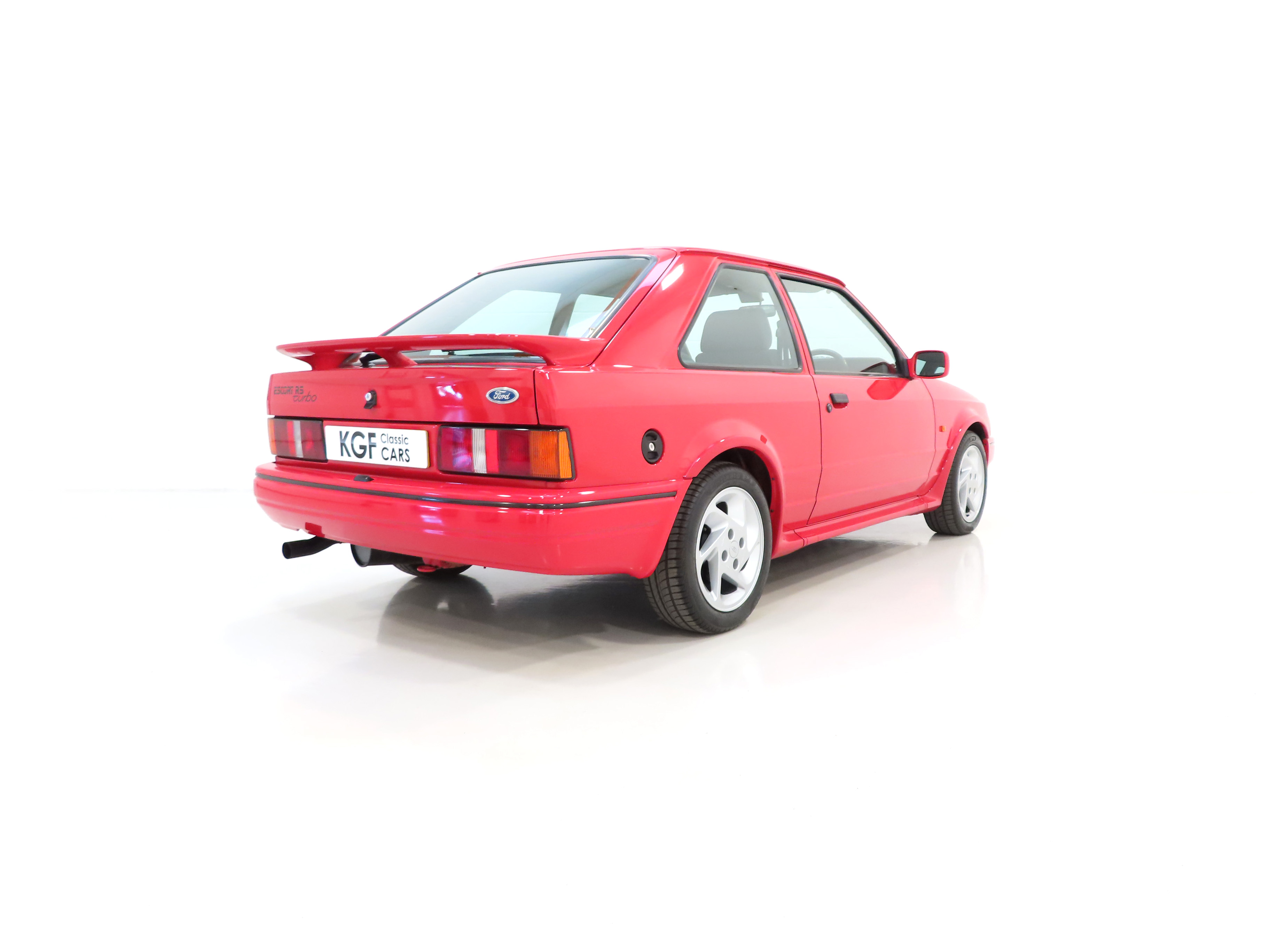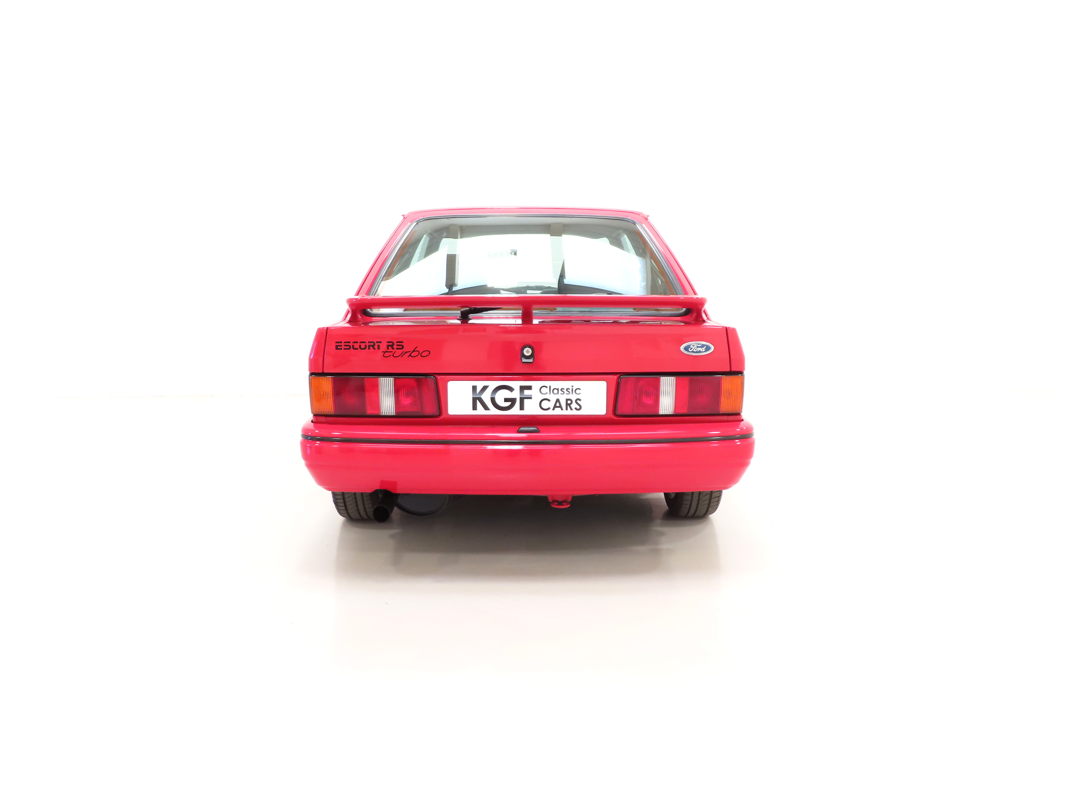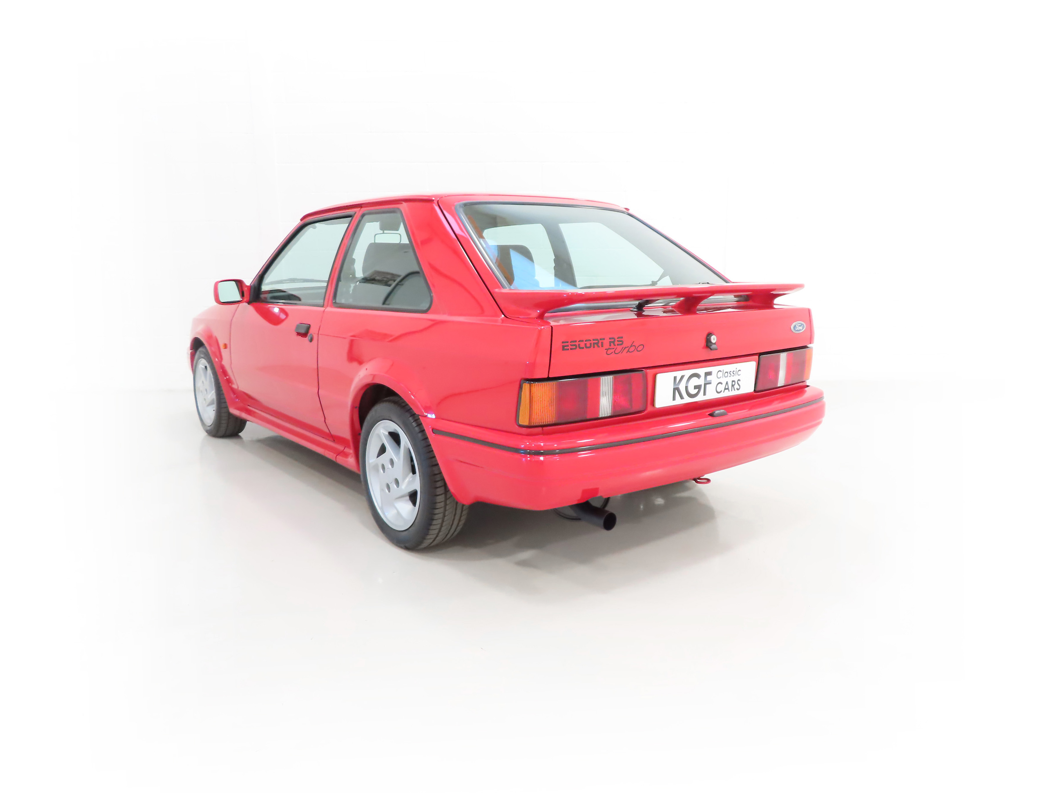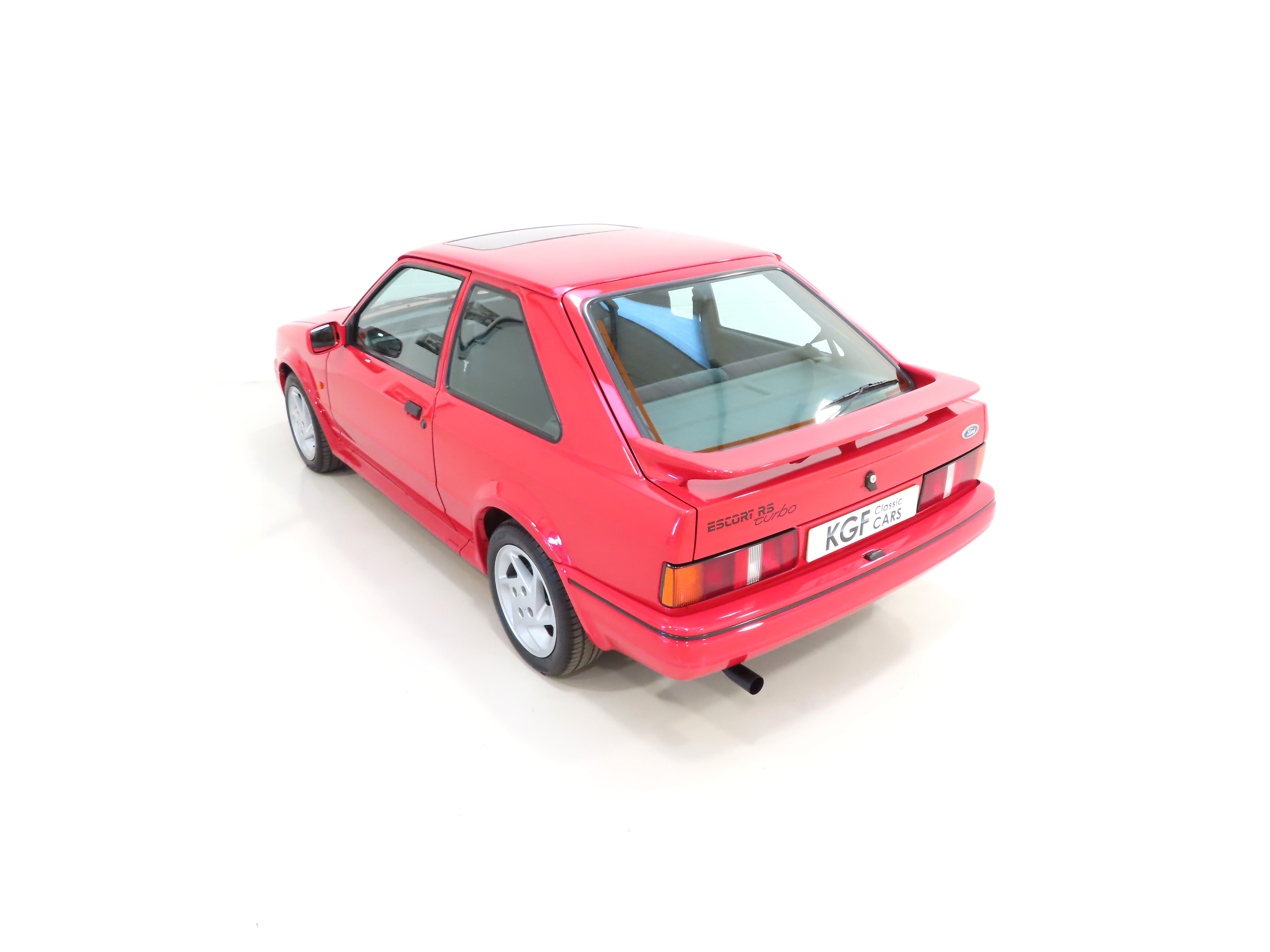 This beautiful and factory standard Ford Escort RS Turbo is finished in original Ford Rosso Red, (Code R5), and has covered a mere 51,169 miles from new. The stunning paintwork boasts a deep uniform shine and highly polished finish while still retaining the correct factory orange peal. All panels are factory fitment and remain arrow straight with uniform gaps, factory wheel arch extension rivets, correct 88-spec trim sections and RS decals are superb. A carefully touched in mark to the nearside C-pillar and slightly discoloured front and rear Ford oval badges are the only imperfections worthy of mention. The original Sekurit dot-dated glass remains throughout and the headlamps, spot lamps and absolutely all other clusters are the factory correct Carello and Ford fitment respectively. Very seldom is such a genuine unmolested RS Turbo found and this example will delight the avid blue oval aficionado seeking to remain true to the Ford RS vision.