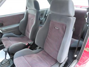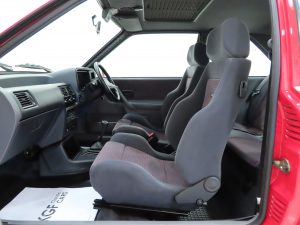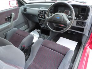 This Escort RS Turbo has an outstanding interior remaining exactly as Ford intended. The fully adjustable supportive Recaro seats show no undue wear to the spotless Daytona Raven fabric, (Code SW), and the huge body-hugging bolsters are firm and retain correct shape. Matching door cards are fully intact with none of the common deterioration to the inner pull handles. The driver’s door arm rest is slightly compressed. The pristine carpets have retained complete fullness to the pile and remain beautifully preserved having been protected from new by Ford rubber ‘waffle’ floor mats. All switches, knobs and dials function correctly and the fully operational Ford Self-Seek stereo radio/cassette with speaker directional control remains fitted. The boot area is very clean with original build stickers intact and a straight uncut parcel shelf. Even the Ford labels to the seatbelts remain attached! A truly magnificent example of this legendary RS Ford.