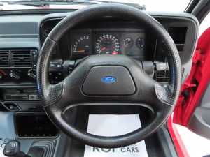 The instantly recognisable RS Turbo light alloy 6X15 wheels remain undamaged and pristine. Five matching premium Pirelli Cinturato P1 195/50 R15 tyres were fitted brand new in 2021 with virtually no usage since. This fast Ford icon stops as well as it goes with the ABS braking system designed in conjunction with Lucas Girling working perfectly.