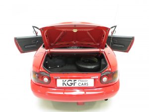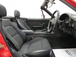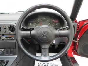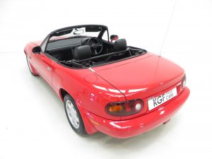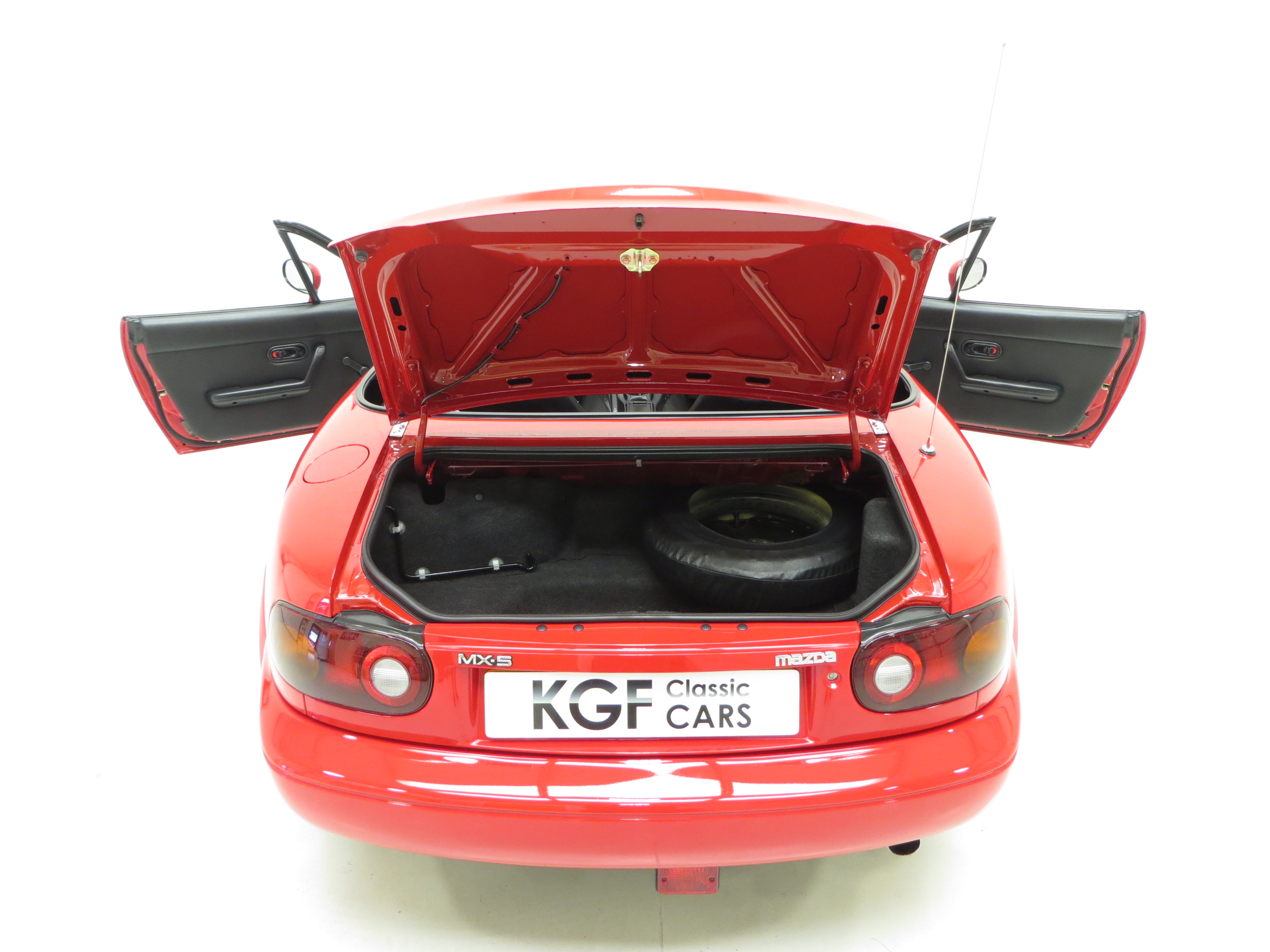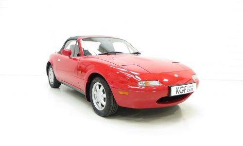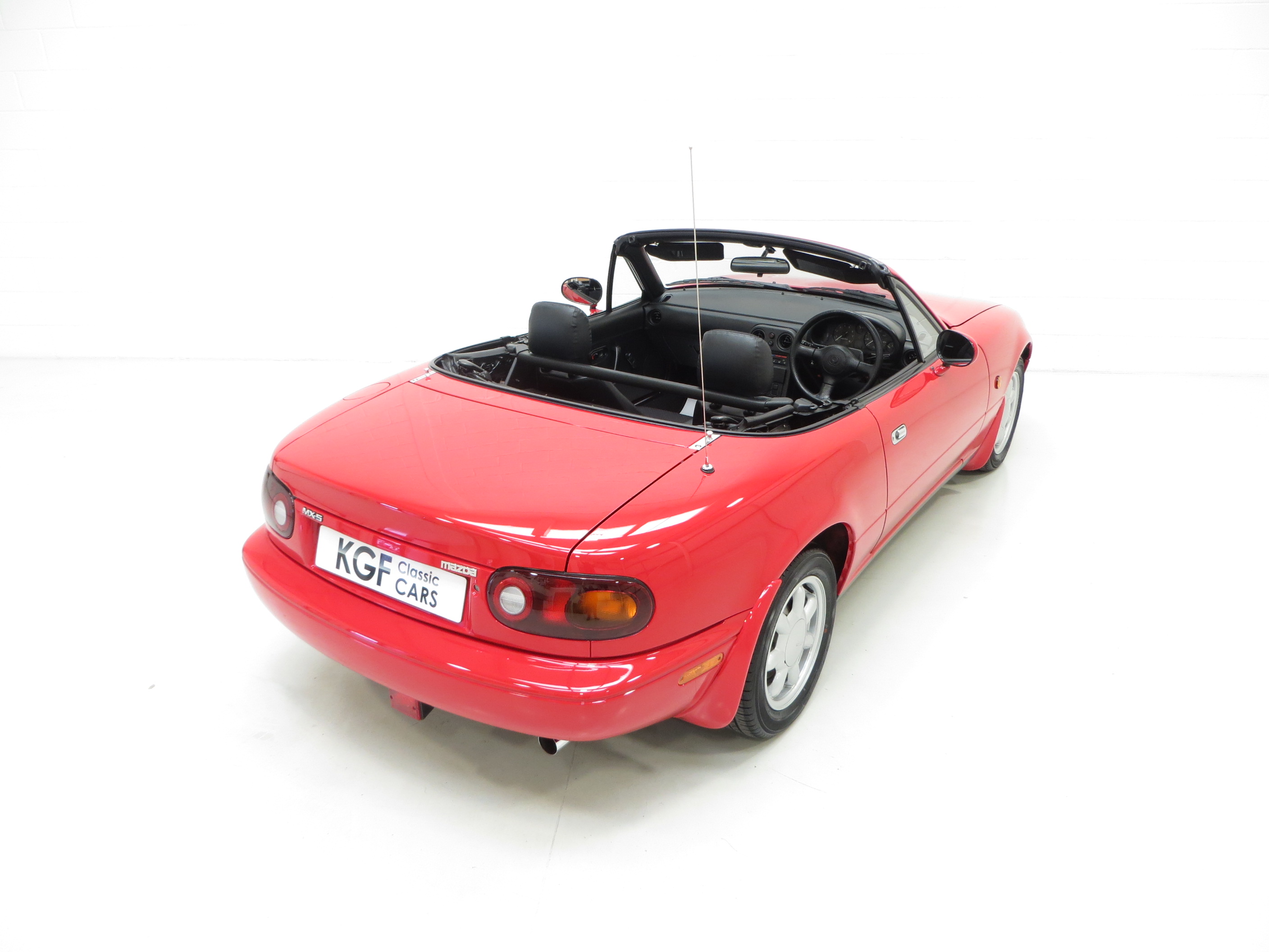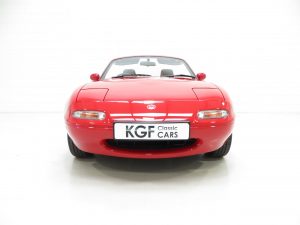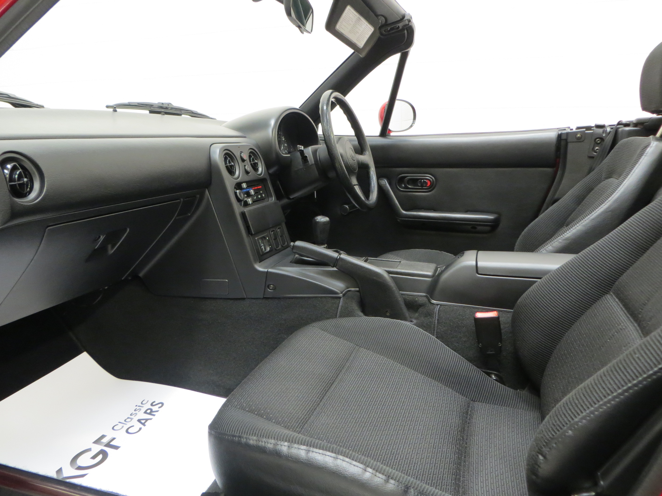 This amazing example was registered new by Mazda Main Dealers, Bourne Road Garage of Kent, on 3rd April 1996. Supplied to first owner Mr Mark Sweet with three UK keepers since the incredibly low 20,342 miles from new is fully verified in the history file. The original Mazda Service Record booklet houses eleven stamped entries, the first nine of which are the supplying Mazda dealer. The most recent stamped entry at Bridley Mazda of Stourbridge was at 18,964 miles. All handbooks, manuals and spare key are neatly contained in the grey leather Mazda wallet along with an immaculately kept folder containing invoices and every MOT carried out from three years old. Sold in December 2016 by KGF Classic Cars to a customer in France, the car has been professionally stored in his collection before the opportunity to purchase it back was welcomed enthusiastically, knowing that the car would be returning to the UK and that low mileage examples are highly sought after. KGF Classic Cars are delighted to be able to present this stunning example back to the open market ready for a new lucky owner.