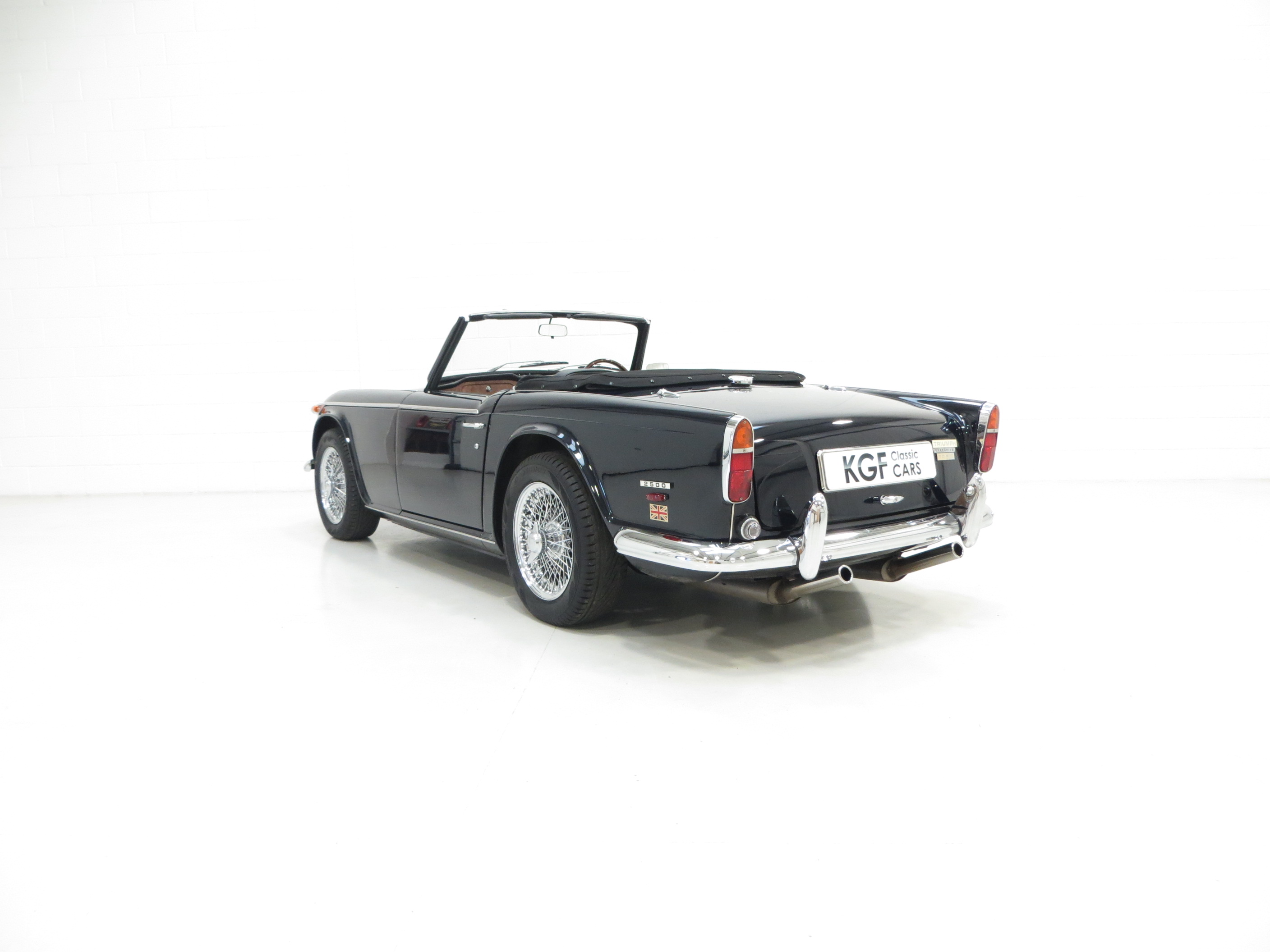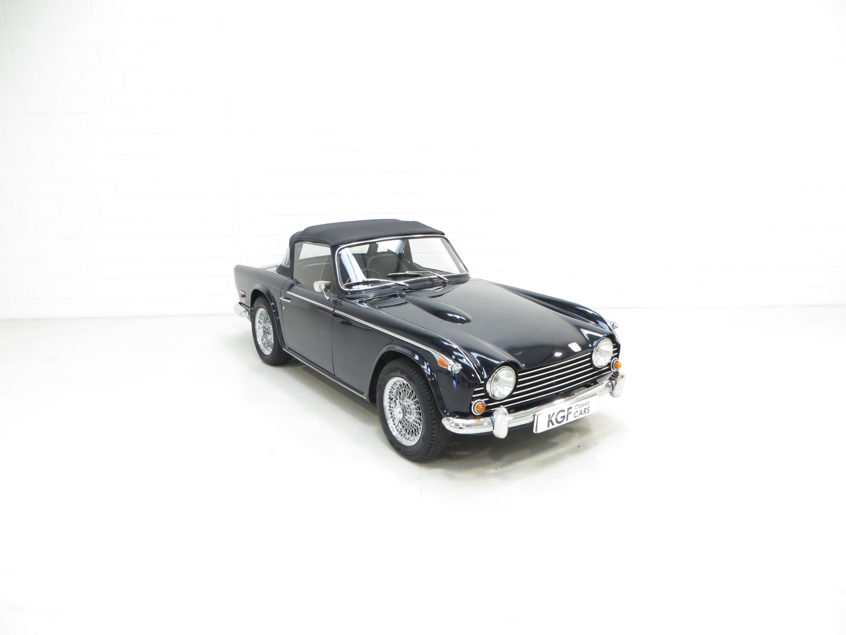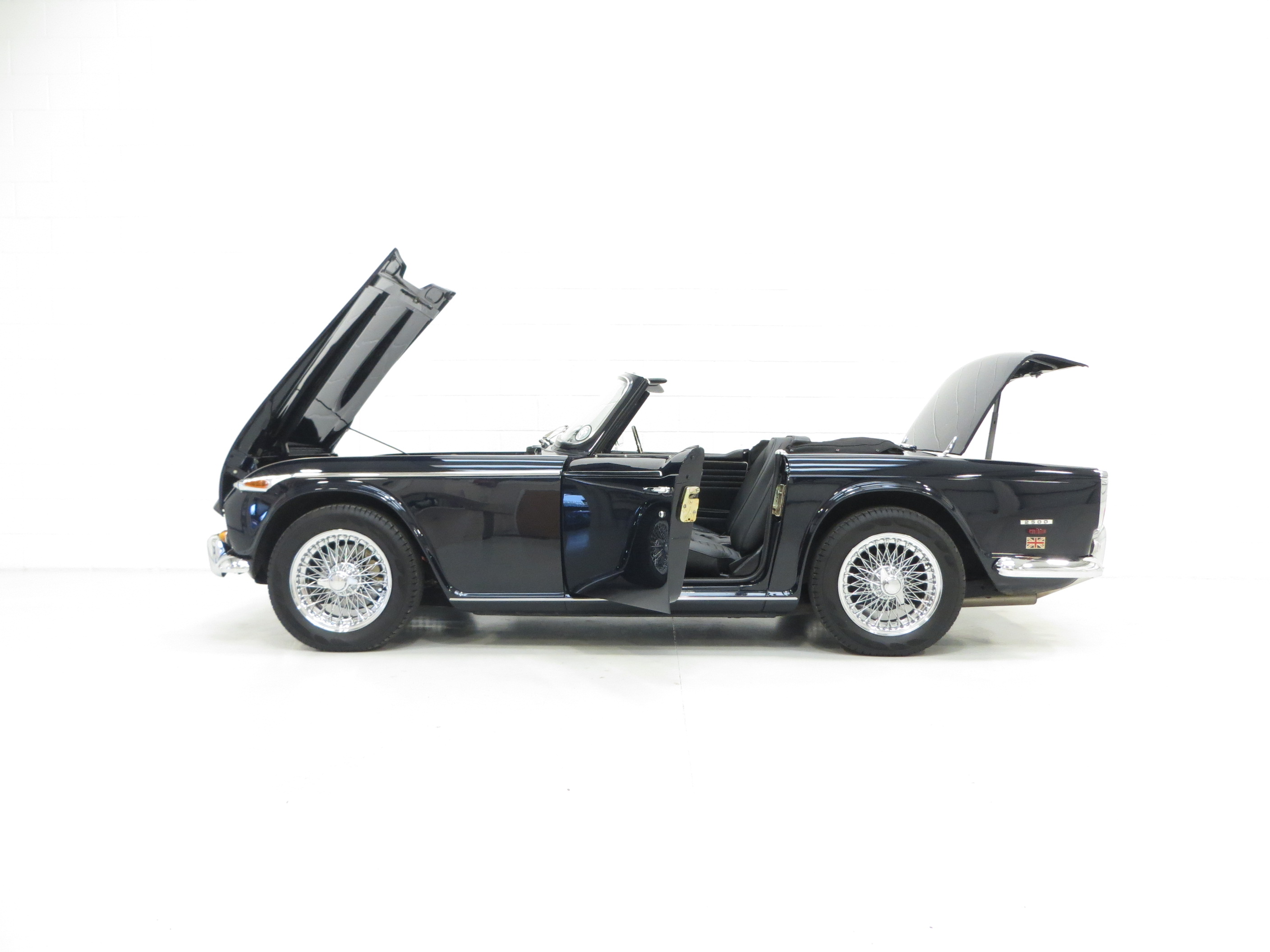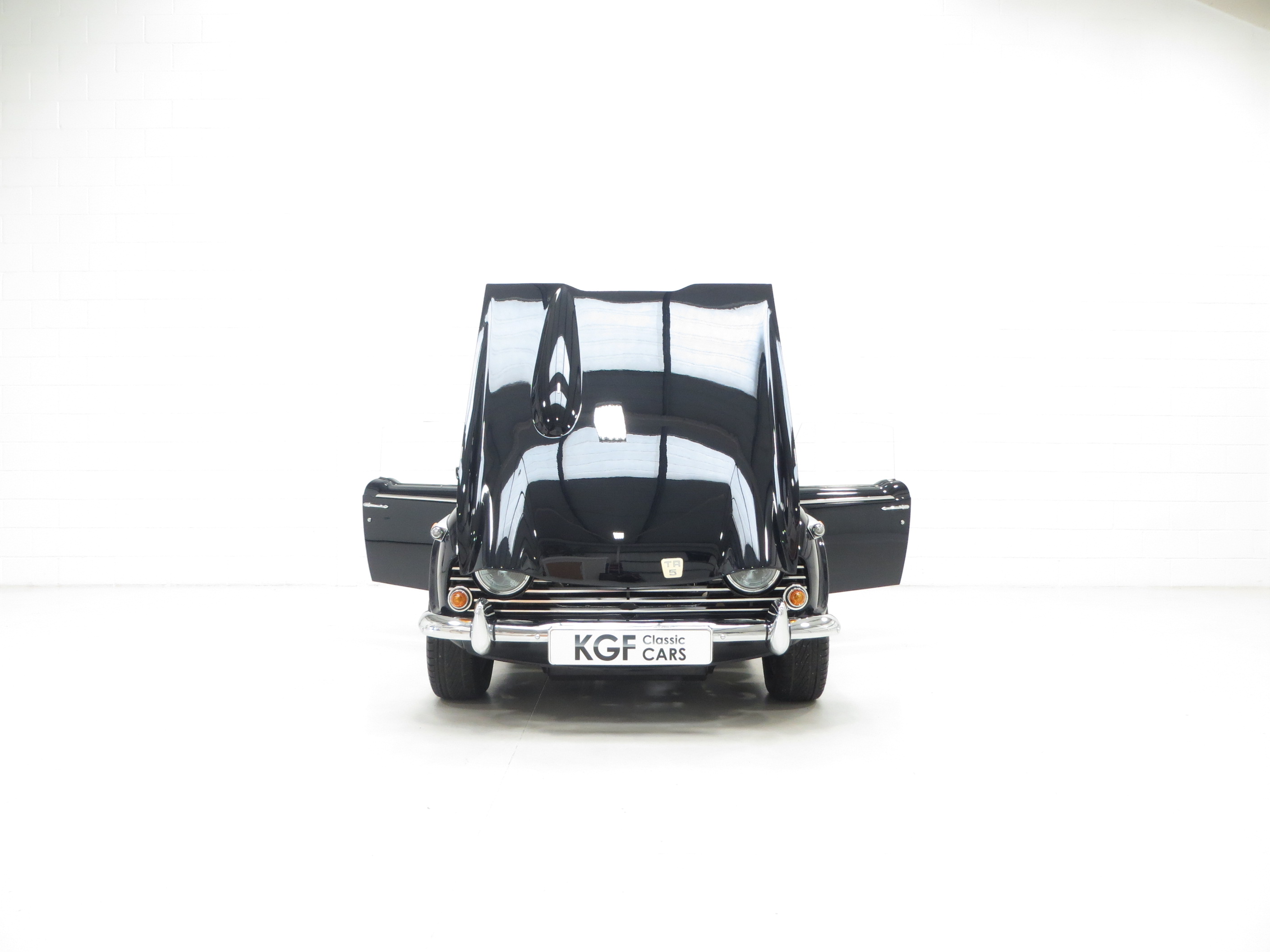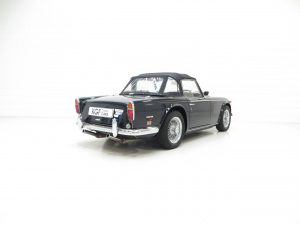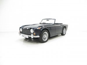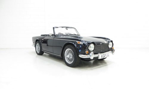 Designed by Giovanni Michelotti the TR5 is instantly recognisable with the classic lines and bonnet bulges admired by so many. Finished in opulent Royal Blue, (Code 56), the glossy polished shine is incredible with a deep clear reflection throughout. The Heritage Trust Certificate confirms this to be the original and correct factory colour. All the chrome has a mirror finish and the black mohair hood with both half and full tonneau covers are pristine. Amazingly presented throughout and a real show piece.