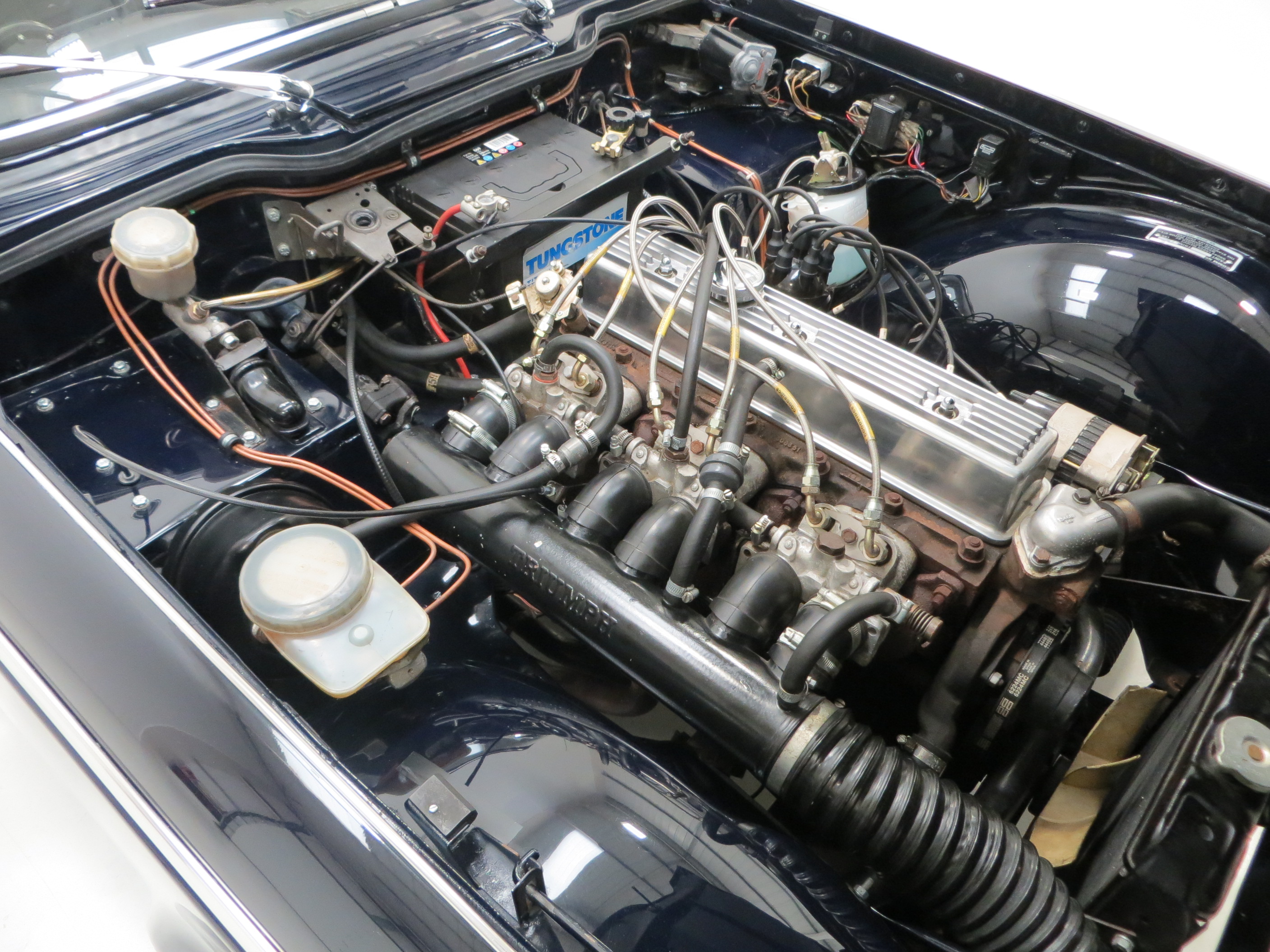 The 6 cylinder 74.7mm x 95mm 2498cc engine produces 150bhp at 5500rpm with a maximum torque 164lbs/ft at 3500rpm thanks to the Lucas fuel injection system. Smooth responsive power makes this a capable modern cruiser with a top speed of 125mph and 0-60 in 8.7 seconds. The exhaust note is truly addictive and exhibitionists will enjoy the spotless engine bay with a polished bonnet underside! A recent clutch kit makes the four speed transmission fitted with overdrive a pleasure to use.