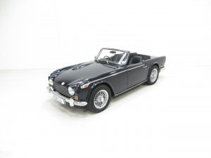 Only produced between July 1967 and September 1968 the TR5/TR250 is one of the rarest and most sought after TR models with only 1161 units for the home market and 8484 units for the export market. The TR250 was produced with twin Stromberg carburetted 104bhp/2498cc six cylinder engine to meet exhaust emission regulations in comparison to the fuel injected 150bhp TR5. Effectively a stop-gap model created to bridge the gap between the four-cylinder TR4A and the six-pot TR6, the TR5 blends the more period looks of the older model with the smooth straight-six of the later one.