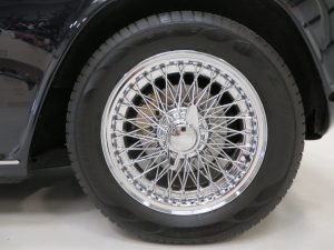 Fitted with the optional and unmarked 60 spoke wire wheels shod in new branded 195/65 R15 tyres all round. Servo assisted front disc brakes and 9 inch drums to the rear provide effective and safe stopping power.