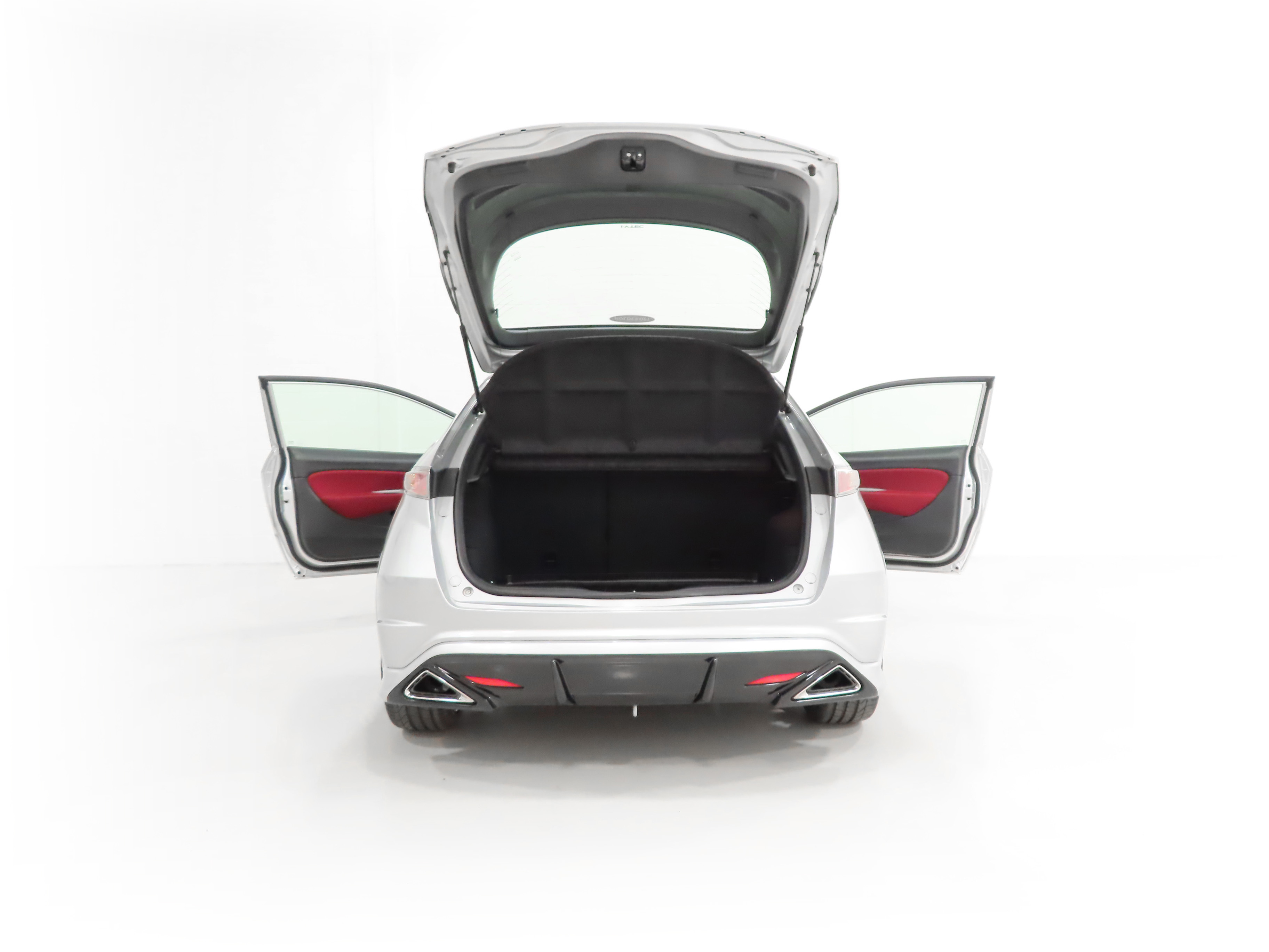 Vehicle Stability Assist, Dual front and side airbags, ISOFIX, CAT 1 interior and perimeter alarm, twin chrome exhaust, mirror integrated indicators, body colour side sill and bumper garnish, body colour rear spoiler, refrigerated glovebox, Type-R Alcantara sports seats, leather covered steering wheel with red ‘R’ stitching, dual-zone dashboard, red engine start button, i-VTEC rev indicator, rev limit light. Type R GT specification; Power folding door mirrors, automatic headlights, automatic rain sensing wipers, front fog lamps, dual curtain airbags, cruise control, dual zone climate control. Factory Options; 19in Rage Design alloy wheels, rear parking camera, Gloss Black and body colour front and rear bumper skirts, body colour side protectors, red ambient footwell lighting. Navigation Pack; Voice recognition DVD navigation and Bluetooth Handsfree telephone system. Dealer accessories; Tailored Tyre R floor mats, boot cargo tray.