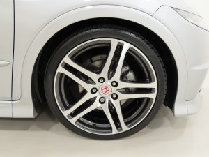 Expensive factory optional 19in Rage Design alloy wheels feature diamond cut faces against graphite inner spokes. The wheels are in perfect condition with no markings whatsoever. Matching premium brand Pirelli PZero and recently replaced 225/35 ZR19 tyres are fitted all round. The sophisticated braking system features ABS with Electronic Brake-Force Distribution and emergency brake assist and the Type R callipers are clearly visible through the huge spoke apertures, all very clean.
