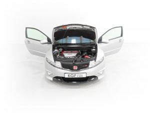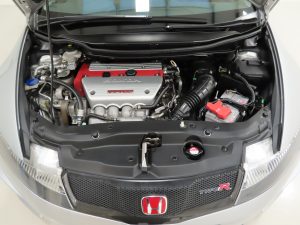 Little introduction is needed for the engineering wonderment that is Honda’s legendary naturally aspirated engines and their phenomenal capabilities, and the chain driven K20Z4 i-VTEC in this FN2 Civic remains in factory standard form. From just a 2.0 litre powerplant, Honda engineers have developed an incredible 198bhp with the VTEC system engaging at 5400rpm and maximum power output at an awesome 8200rpm! A top speed of 146mph along with 0-62mph in just 6.6 seconds is enough to embarrass many a performance car with much larger six-cylinder engines. The engine bay is clean and exactly as Honda intended with all factory stickers and plates intact as well as the bright red cam cover suffering none of the common flaking affecting many examples. The slick 6-speed manual short-throw gearbox allow rapid slingshot gear changes.