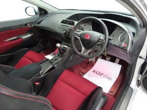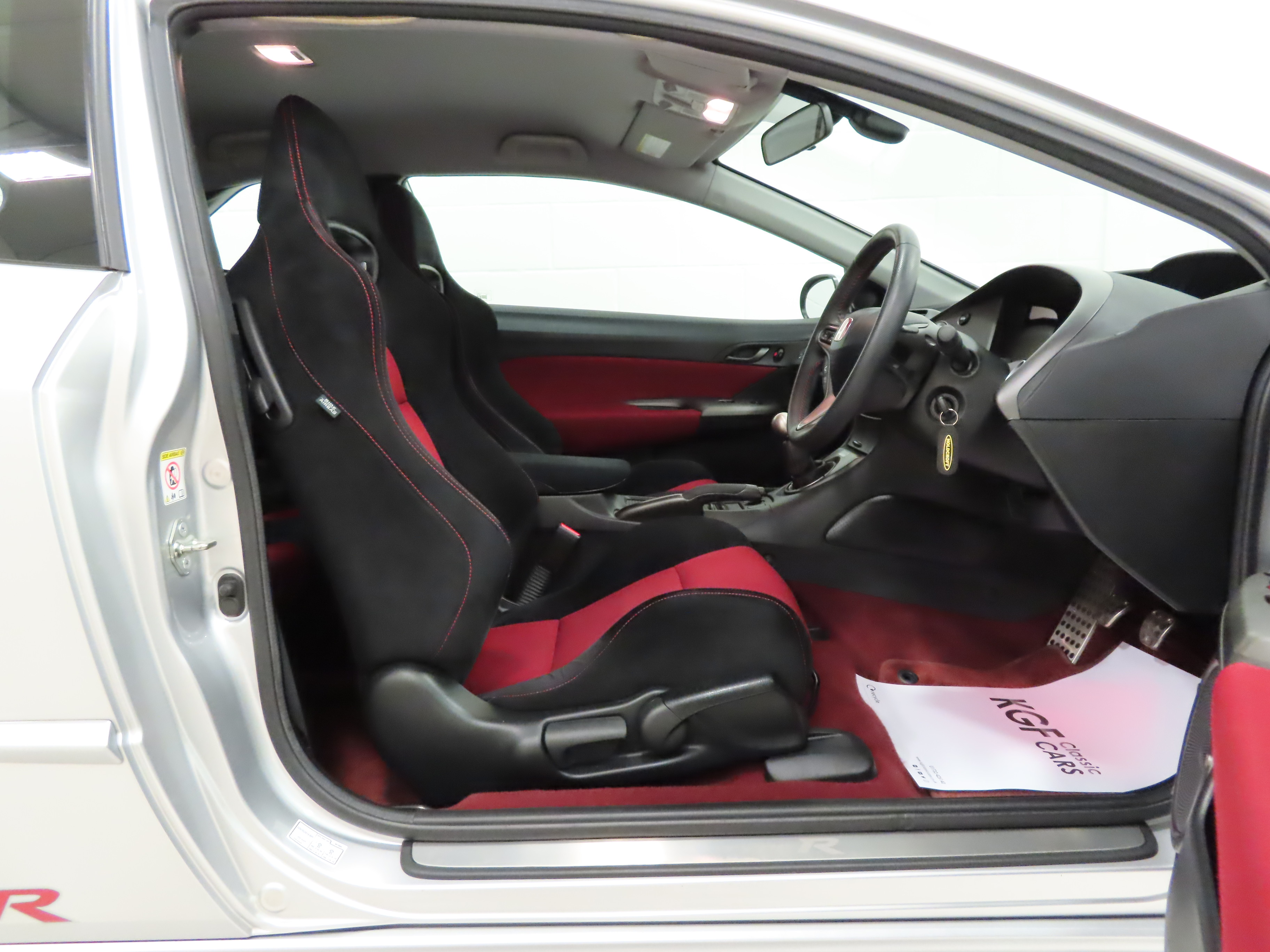 This cherished and factory standard Type R is the highly sought-after GT model having covered just 38,352 miles and is Father and Son owned from new. Finished in one of just four colours available at the time, (Alabaster Silver – Code NH700M), the factory original paintwork is simply stunning. A bright uniform shine to the pin straight bodywork will please even the most zealous scrutineer and the only imperfections worthy of mention are a few minor touched in stone chips and a small scratch just behind the driver door rear edge. The first owner specified a huge list of factory options to include, amongst others, the extensive and seldom specified Gloss Black front and rear bumper skirts and body colour side protectors. All bumpers, spoilers, trim and badges are intact and in excellent condition, as are the light clusters which remain clear with none of the common plastic fatigue. Supplying Honda main dealer number plates and rear screen sticker remain fitted to this awesome unspoilt and low mileage example.
