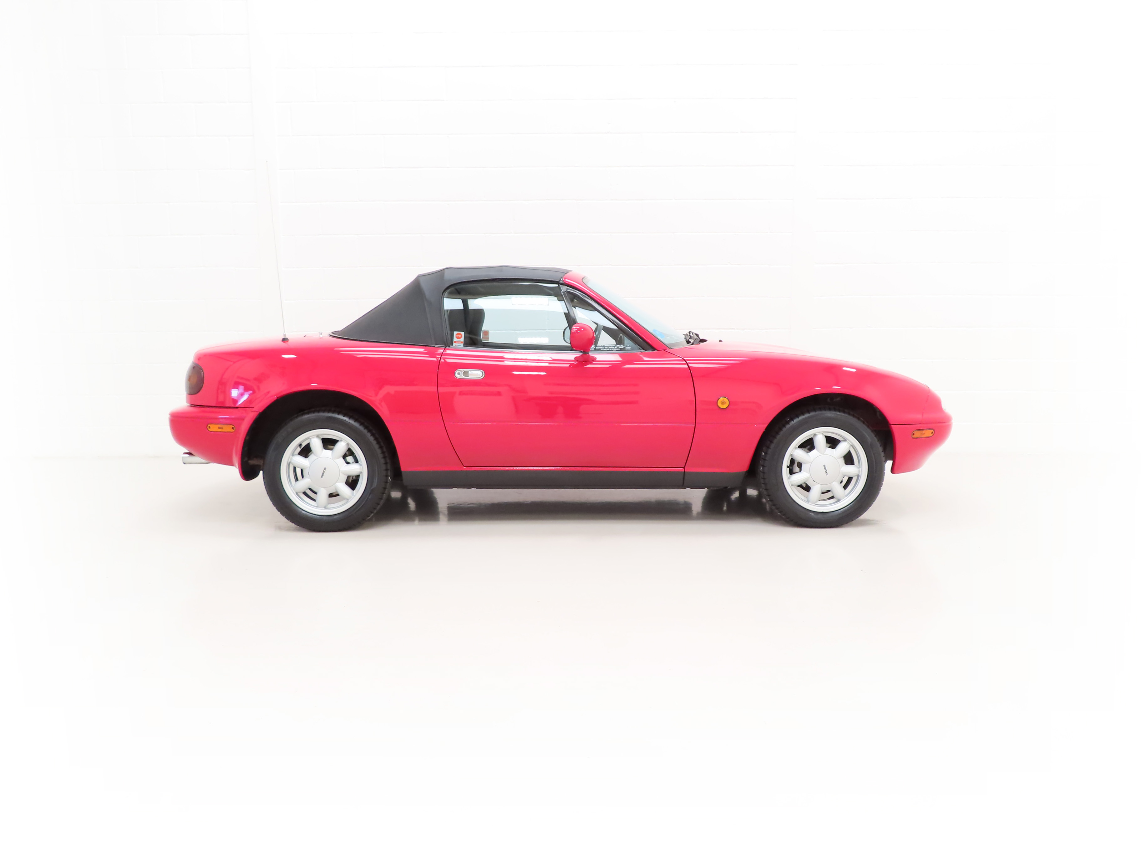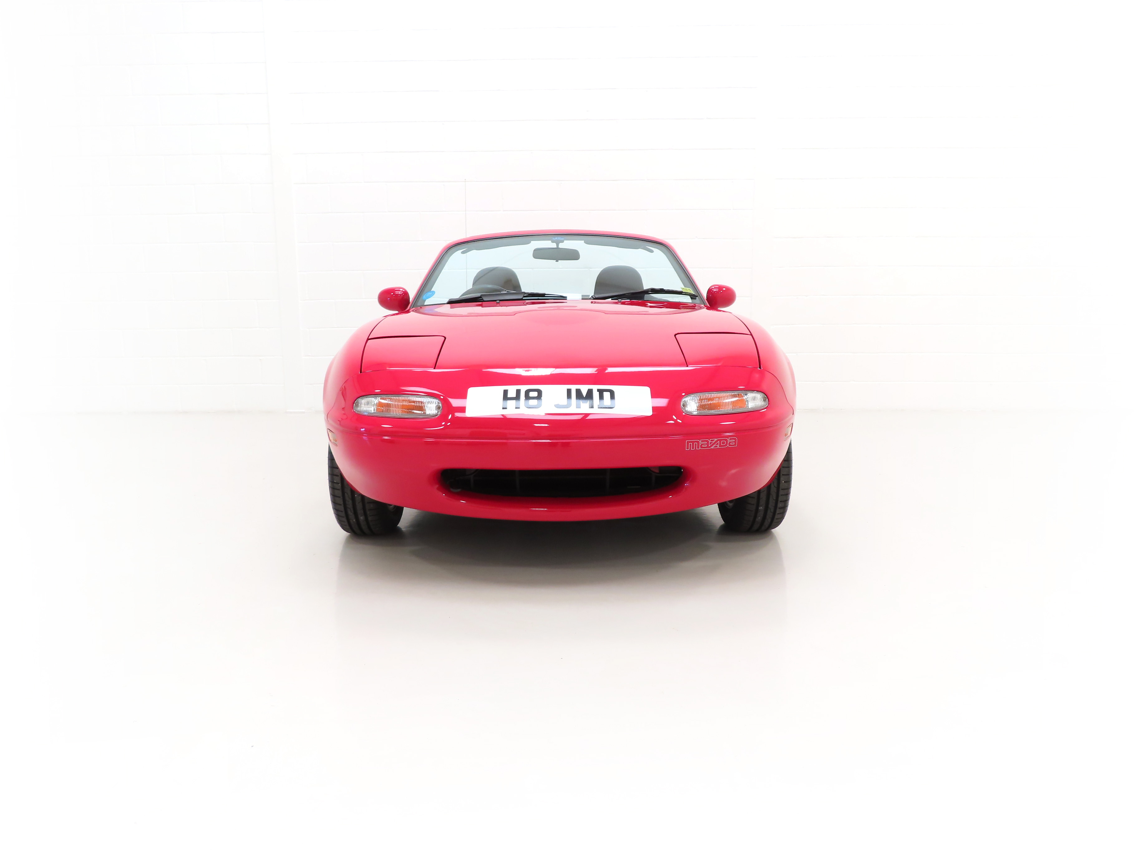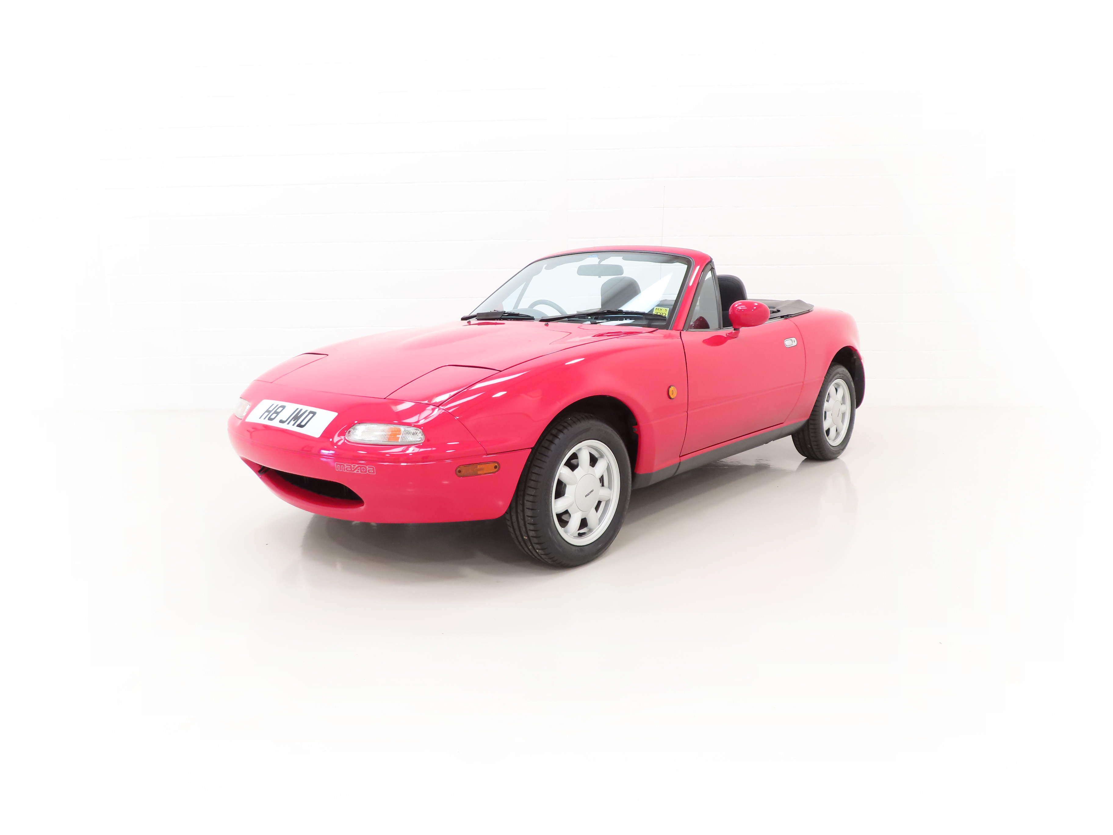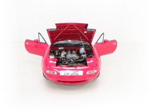 This factory original, early and unmolested UK Mazda MX-5 is finished in stunning Classic Red, (Code SU), which looks fantastic and boasts brilliant uniform shine and deep polished finish. The original panels are pin straight and the amazing condition extends to perfectly preserved sills and rear wheel arches still showing defined spot weld dimples. The excellent underside condition is a welcome sight and all factory stickers remain affixed to the door apertures. Factory glass has MX5 Club stickers attached, all easily removed. All trim, exterior rubbers, glass, lights and badges are in brilliant order, even down to the front nearside Mazda bumper sticker only fitted to early cars and lost on many examples. Supplying Mazda Main Dealer number plates front and rear remain fitted including the front registration number sticker that was fitted as standard to only the earliest examples. There are no number plate holes in the front bumper. The black canvas hood is immaculate with the fully intact factory fitted Perspex rear screen perfectly clear. An instant success from Mazda upon UK launch in 1990, this very early example is one of the first and will delight the collector wanting the purist version.