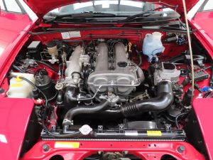 To experience driving a low mileage and unspoilt Mk1 MX-5 is a true motoring delight. The lightweight 1.6 litre 16v DOHC engine sits low and behind the front axle to offer a low centre of gravity and centralised weight distribution making handling perfectly balanced and delightfully responsive. With 114bhp available, a top speed of 121mph and 0-60mph time of 8.7 seconds is achieved. The factory exhaust system with OEM stampings to the silencer and bright exhaust tip spot welded to the exit pipe remains fitted and in excellent condition. The engine bay is very clean with all factory plates and stickers intact, including the often-lost bonnet underside stickers. The thrilling close ratio five speed gearbox provides short and positive gear changes. Huge grin motoring guaranteed!