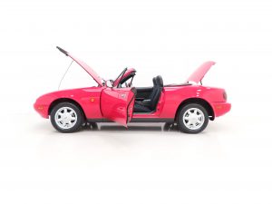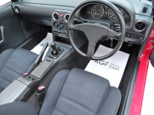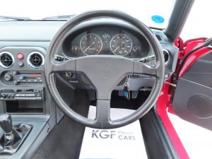 Registered new on 11th April 1991, this early build UK example was supplied by Main Dealer, Lodge Garage Aylesbury Mazda. The first owner, Mr Davies, purchased the car and was offered the choice of either a front registration number sticker applied to the nosecone which was standard or an optional number plate and plinth. Mr Davies chose the sticker which still remains applied today! Mr Davies sold the car after 19 years of ownership at which point it had covered just 6,631 miles and an email in the history file confirms as such. Having the purchased the car from the latest owner, KGF Classic Cars contacted the first owner and spoke to with him about the car whereby he was pleased to hear how well cared for it remained and how low the mileage still is. His personalised plate is still fitted to the car.