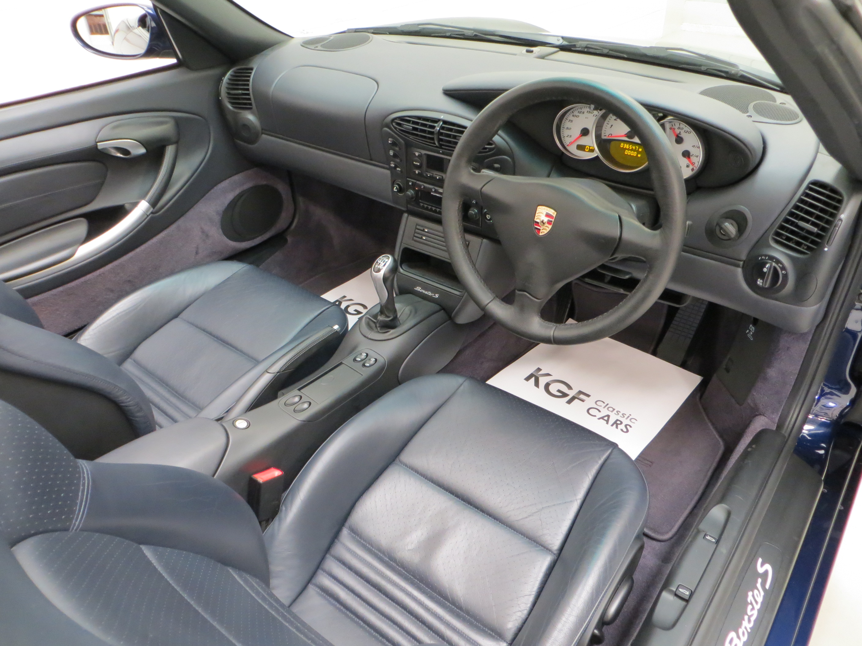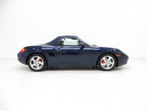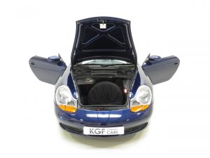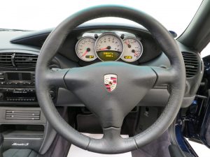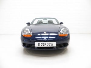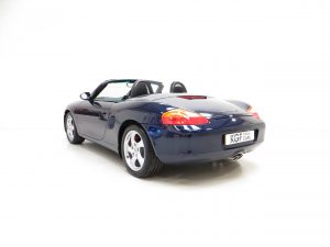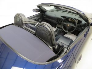 Finished in factory optional Lapis Blue Metallic, (Code L3AB), the original paintwork is simply incredible owing to regular professional paintwork preservation treatment and having been strictly garaged from new with dry usage only. The incredibly low mileage of 36,547 miles covered by just two fastidious owners is entirely evident in the condition of this example, whereby even meticulous scrutiny will find nothing other than a miniscule touched in stone chip to the rear quarter. A spotlessly clean underside will greet those wishing to carry out a ramp inspection. The UV-resistant hood in optional Metropole Blue is perfect in both operation and condition, and the rear screen is perfectly clear with only one small mark. All trims sections and badges are as new and the supplying Porsche dealer sticker is displayed in the windscreen. An exceptional car in a condition far superior to the usual offerings, one of the best without question.