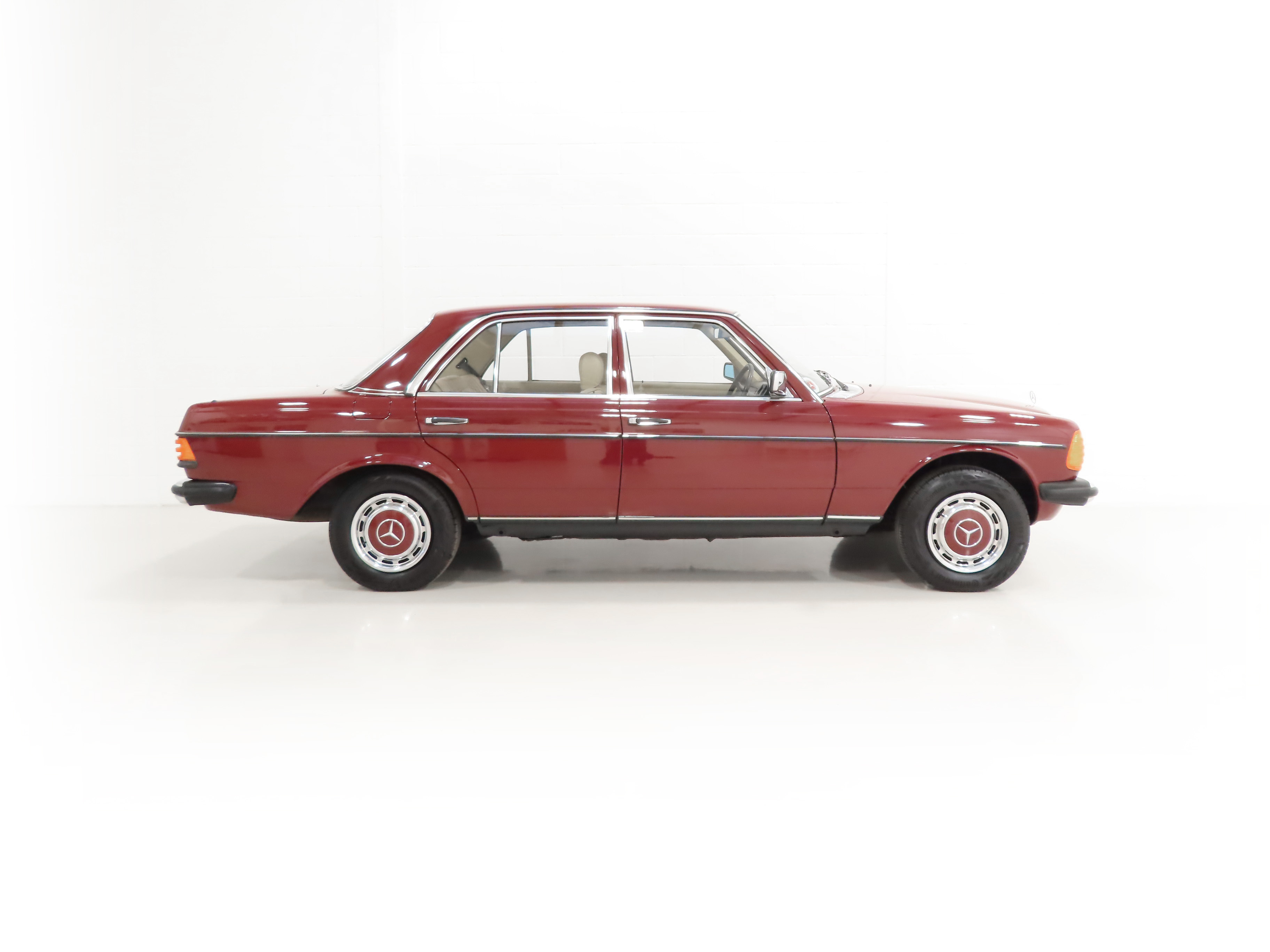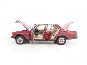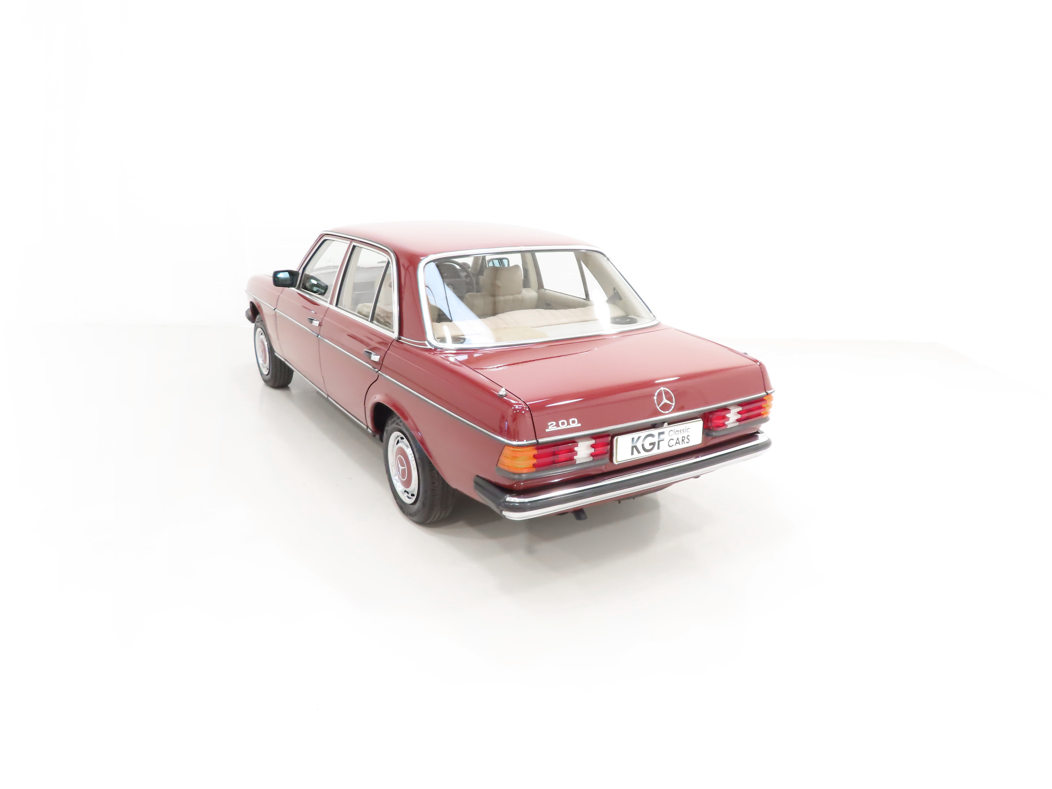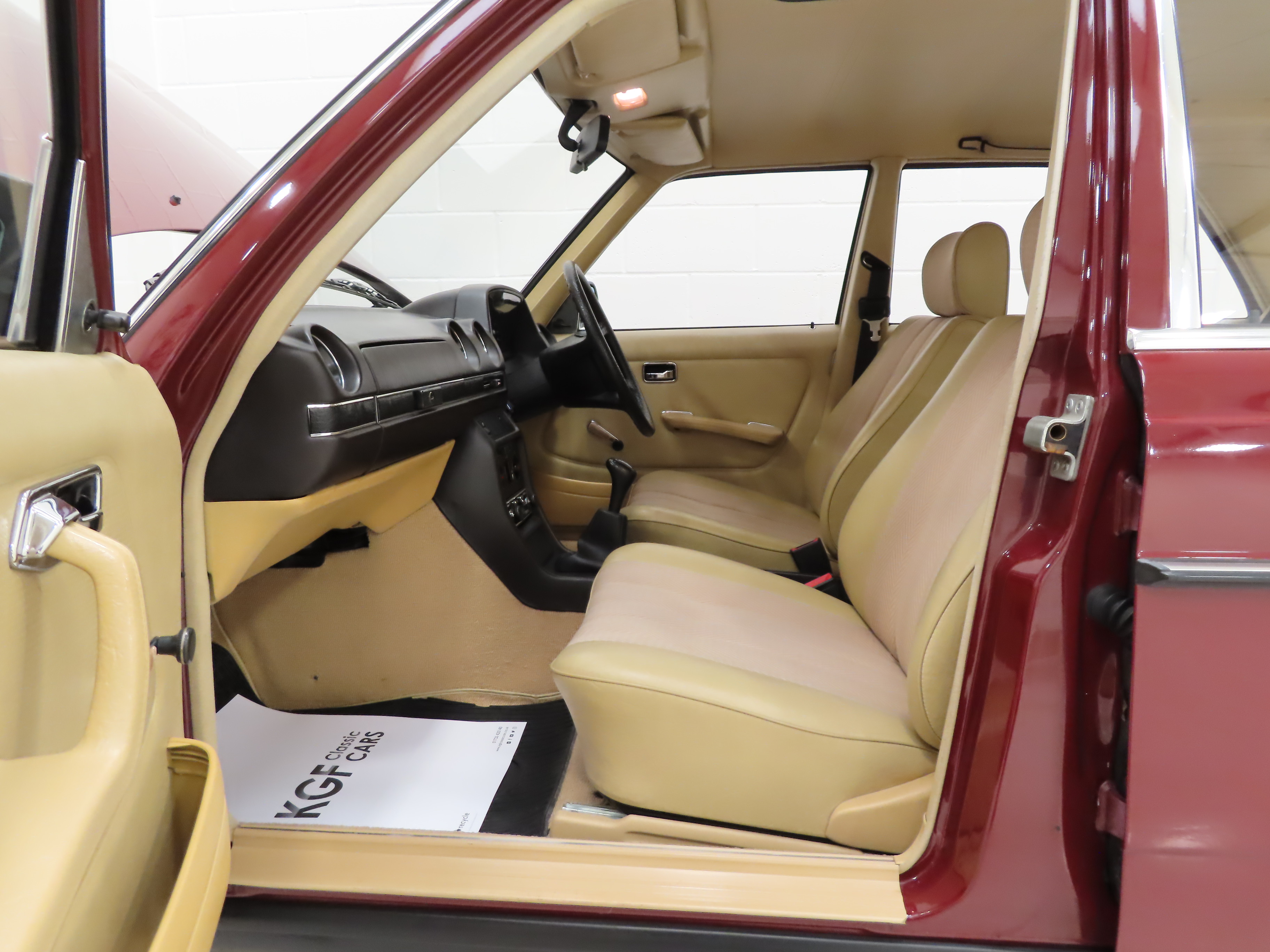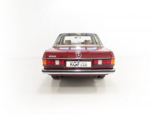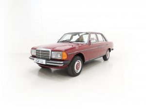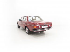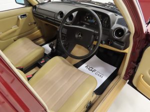 Synonymous with the pinnacle era of legendary Mercedes-Benz build quality, the craftsmanship displayed with this W123 200 is demonstrated throughout. Finished in Orient Red, (Code 501H), the paintwork is uniform throughout and boasts a stunning glossy finish. All beautifully made trim sections, high quality chrome and lights are preserved and bright. The rubber inserts to doors and bumpers are undamaged with no cuts and there is a small blemish to the bonnet corner. Having covered just 34,486 miles from new and garage stored, this iconic W123 is sure to appeal to many classic car enthusiasts.