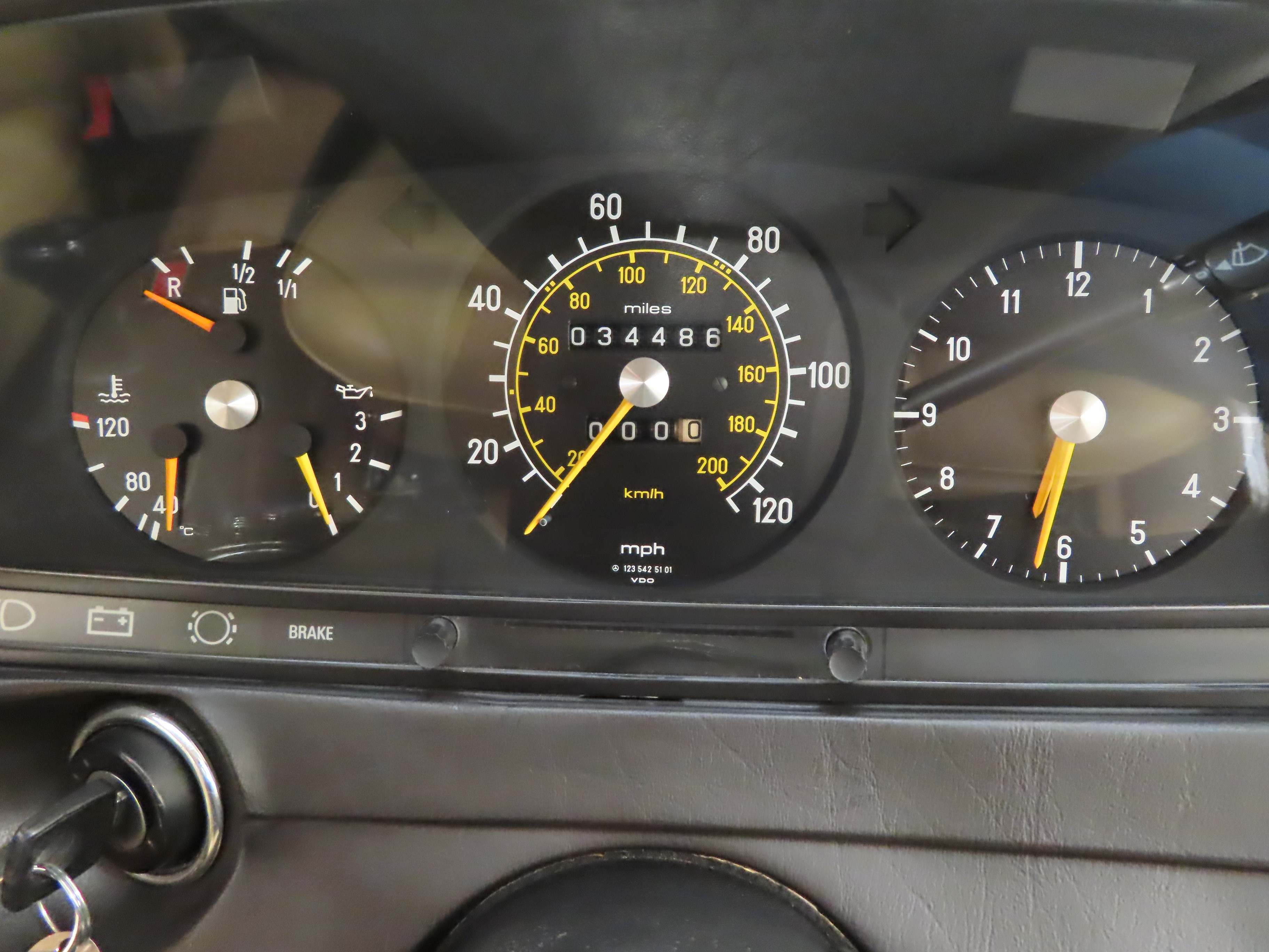 The sturdy and reliable 2.0 litre four-cylinder Mercedes engine was the choice for high mileage users with low running costs and extended service intervals, fortunately this is not the case with this example having covered just 34,486 miles! 94bhp is quoted and is delivered in a flexible smooth manor up to a top speed of 99mph. The engine bay is entirely standard with factory stickers, plates and panel stampings preserved and showing some natural aging. Even the delicate and usually perished rocker cover label and radiator cowling stickers remain intact! The baulk-ring synchromesh four-speed gearbox with self-adjusting diaphragm spring clutch is light and positive.