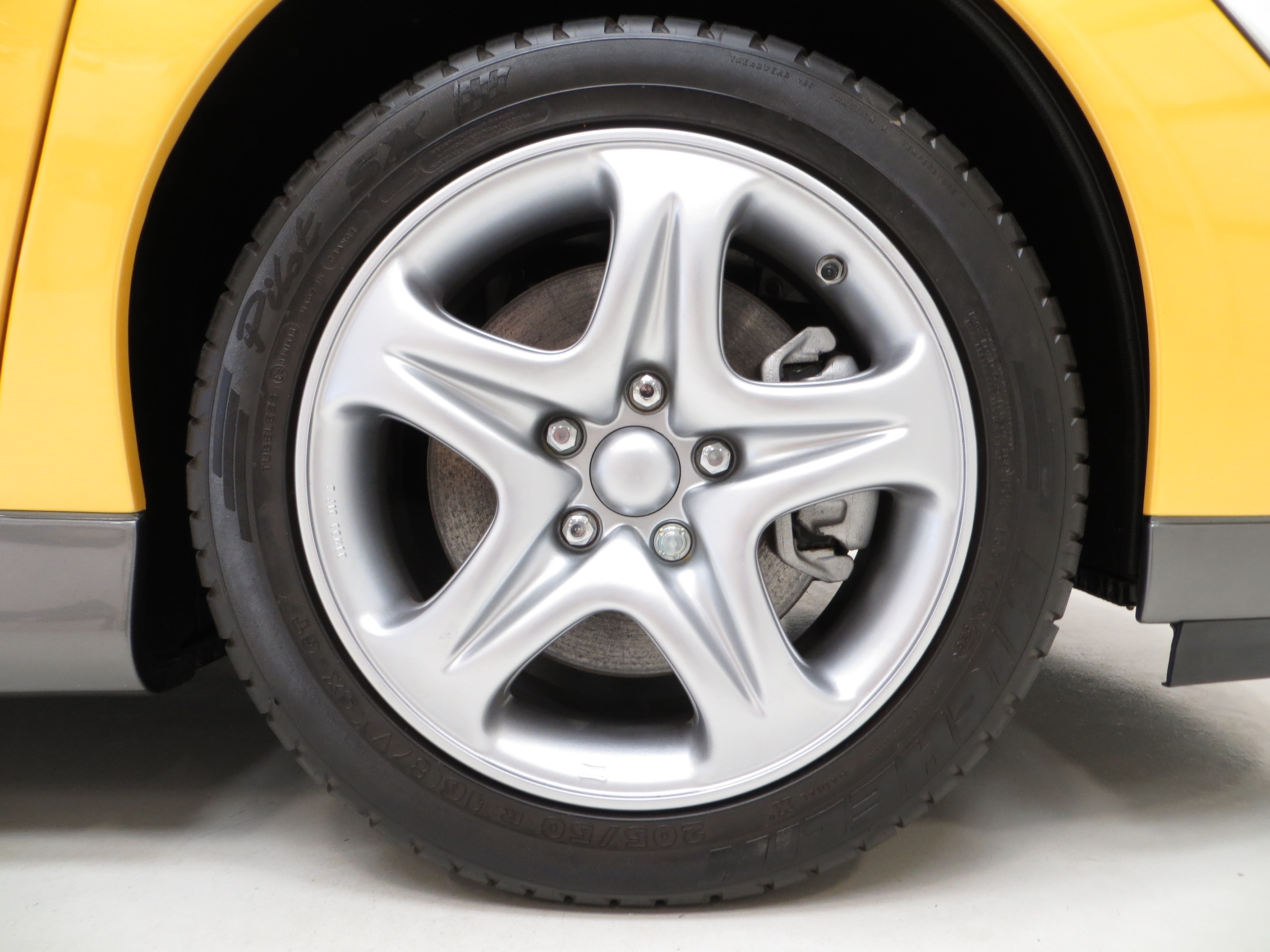 Lightweight five-spoke alloy wheels with plated bolts are shod in premium 205/50 R16 Michelin Pilot tyres. Big 300mm ventilated disc brakes all-round taken from the larger and heavier 166 mph A610 Turbo rein in the exuberant performance of this super-lightweight Spider.