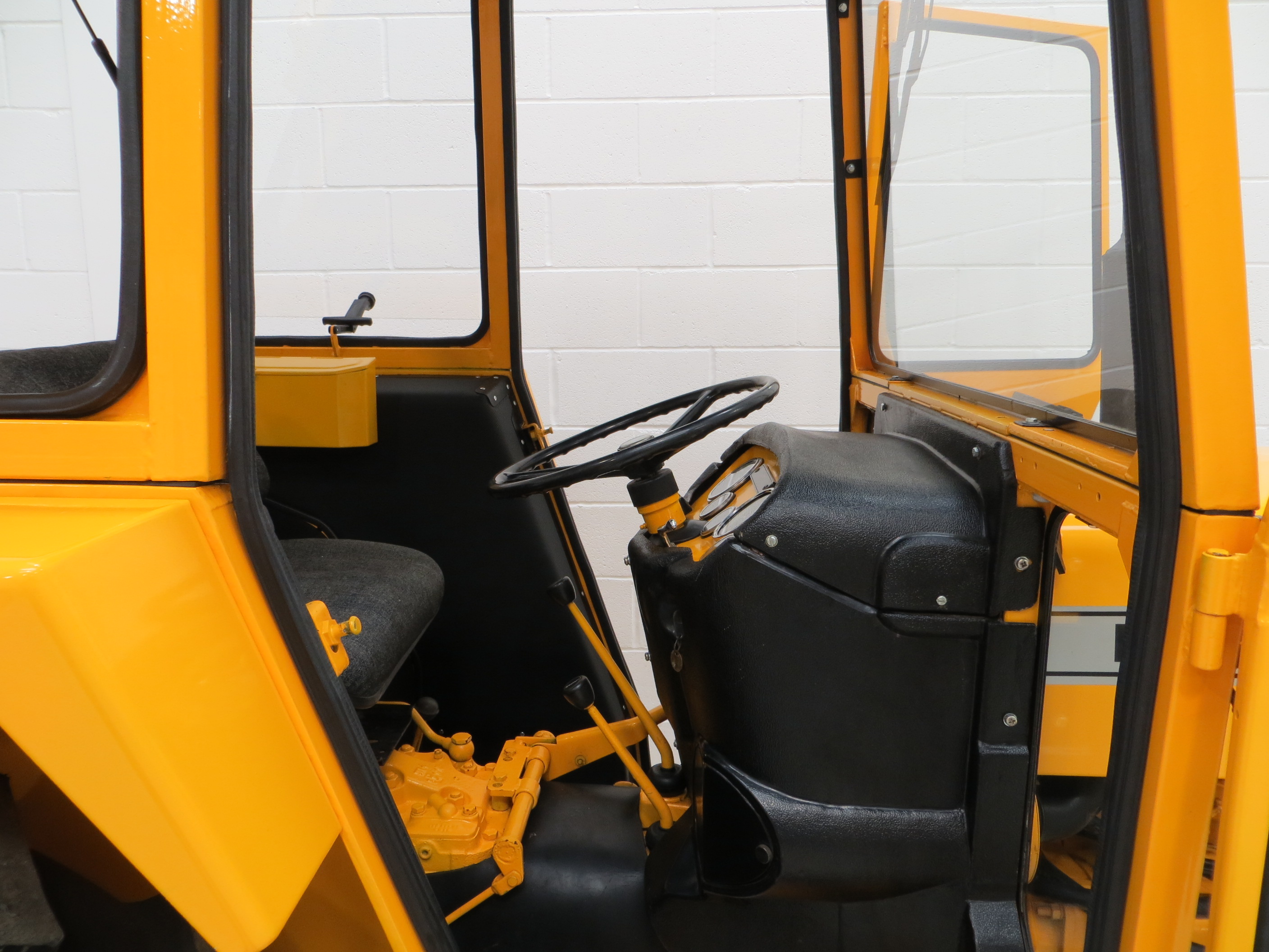 Surprisingly well equipped and functional, even down to the operator’s lunchbox! The interior is in superb order with the cab off restoration allowing for the painting of exposed mechanical components and floor sections which remains protected by the ribbed rubber matting. Incredibly, the seat and interior materials were retrimmed by none other than the Trimmers used by Aston Martin, and as such are completed to the highest standard. All functions, lights and controls operate perfectly including the operator comfort features, hand throttle and hydraulic equipment. All dials and gauges provide accurate readings. The battery cover cowling shows light damage to one corner. A clean, unspoilt and utilitarian cab, a far cry from a hard life on the farm!