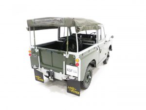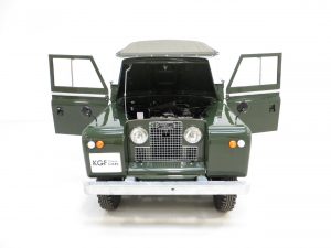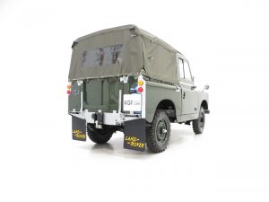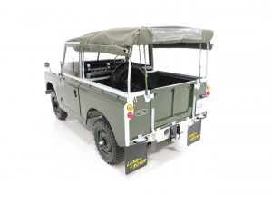 This iconic and outstanding Series 2a Land Rover is finished in traditional Bronze Green and shines with a mirror finish. Attention to detail can be witnessed in all areas including the immaculate underside with a new galvanised Richards chassis which will amaze spectators expecting to see utilitarian components plastered in mud. A totally rebuilt bulkhead with the correct pressings in the footwells and domed full rivets will satisfy perfectionists. Lucas headlamps mounted in the grille area reveal the early design features favoured by many. Beautifully basic in all respects the new Exmoor Trim full Khaki Canvas Hood and full hood stick set are brand new. This example is a real show winner.