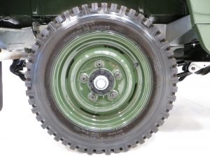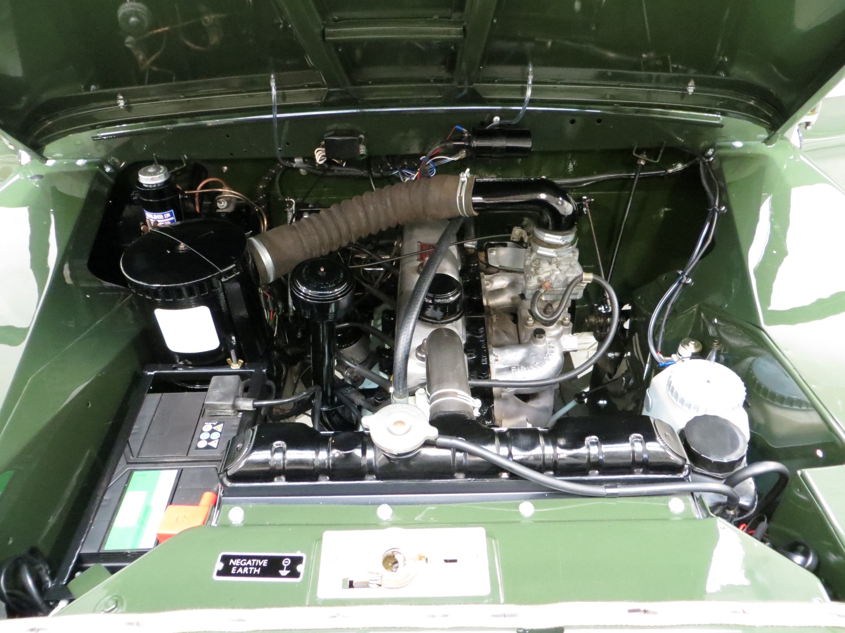 The four cylinder 2286cc petrol engine with overhead inlet and exhaust valves produces 77bhp and 124lbft of torque. Rugged simple engineering with the benefit of a full rebuild and lead free cylinder head by Turner Engineering, re-manufacturers of Land Rover Engines. Stunningly detailed in every respect the correct decals on the air cleaner, brake fluid reservoir and oil filter will please exhibitionists. A tough four speed gearbox with a two speed transfer box gives eight forward speeds and two reverse and has had a full rebuild by R.J Land Rovers. The transfer box, differential and front and rear axles have also been fully stripped and rebuilt.