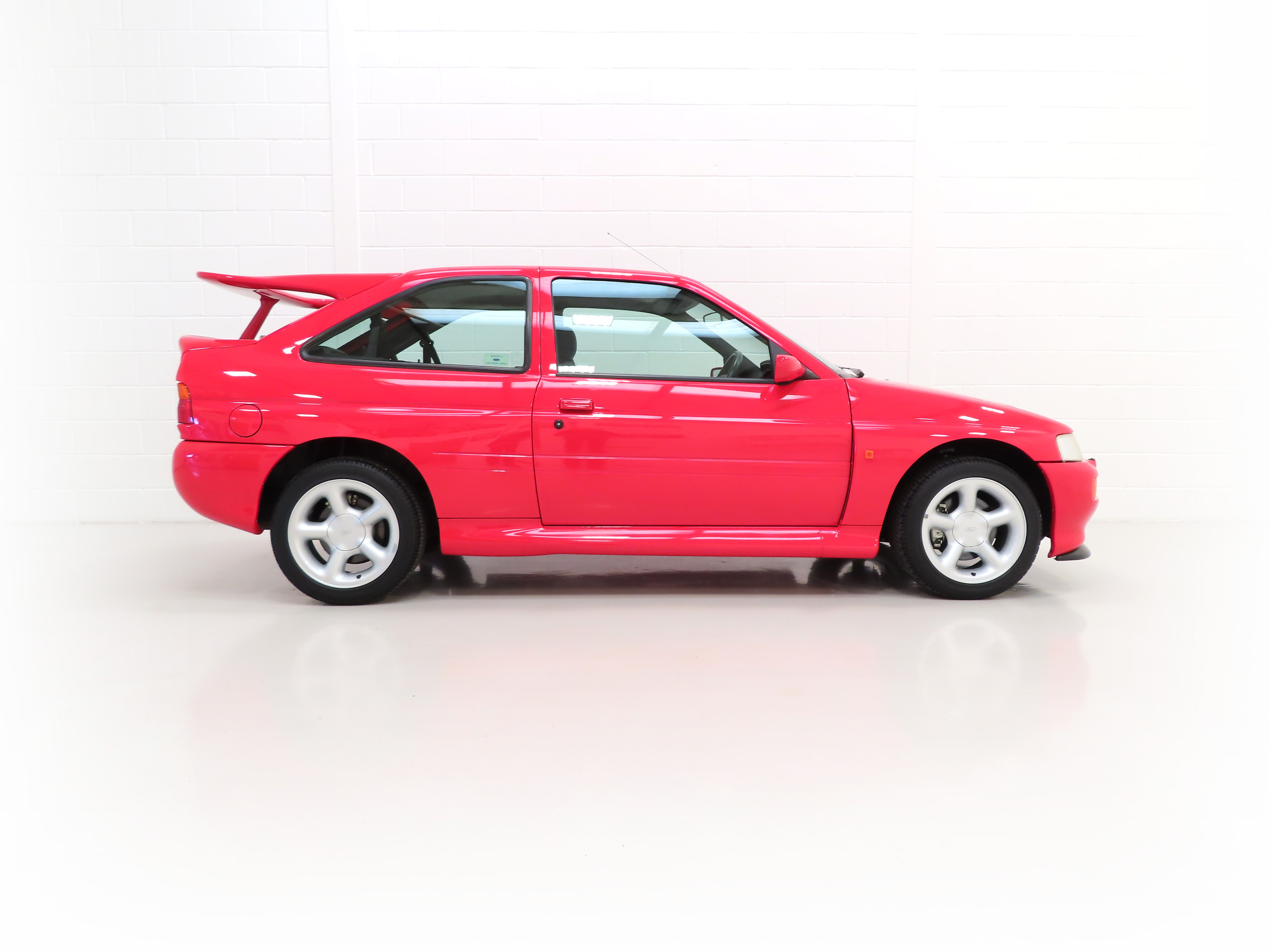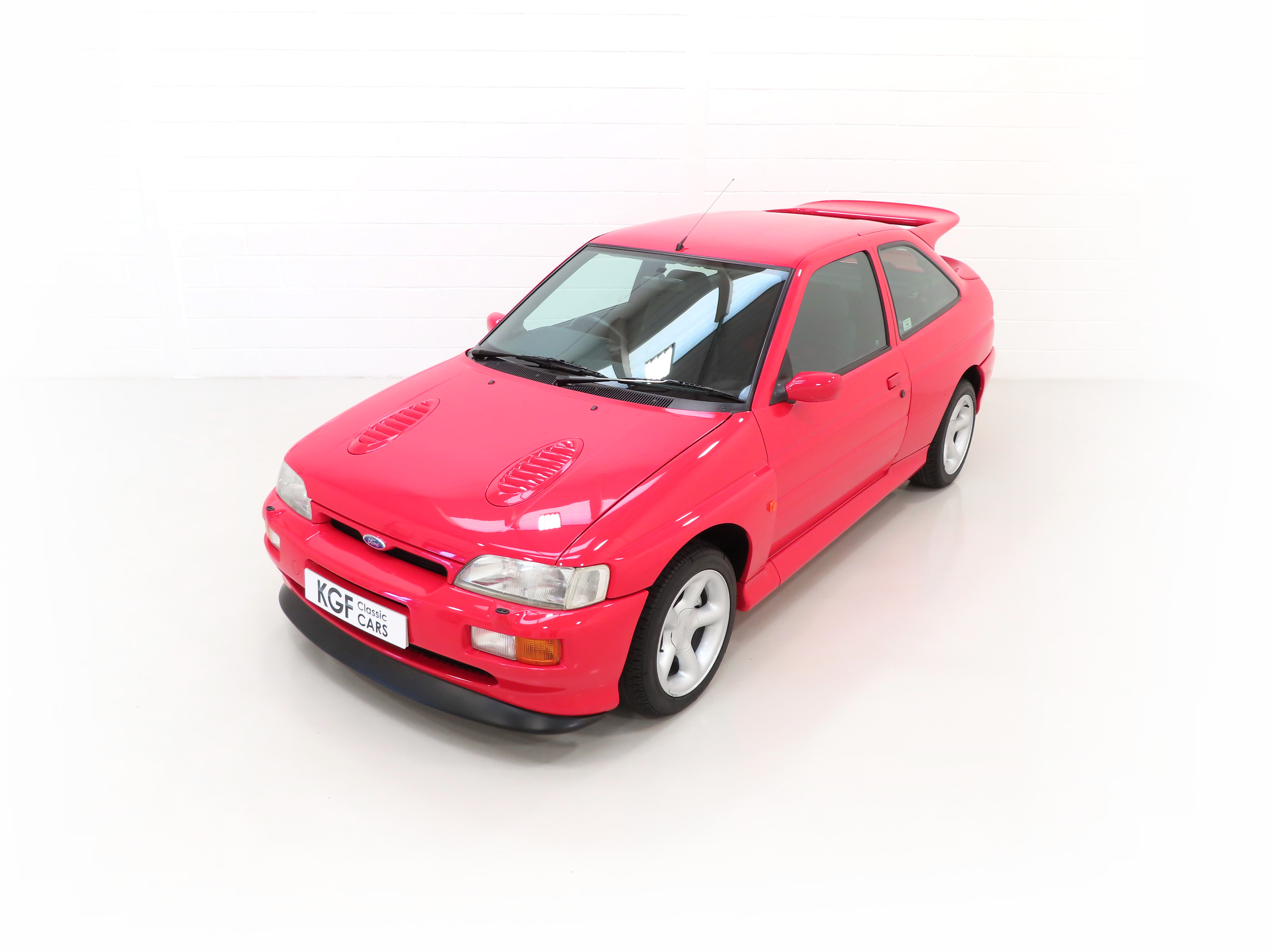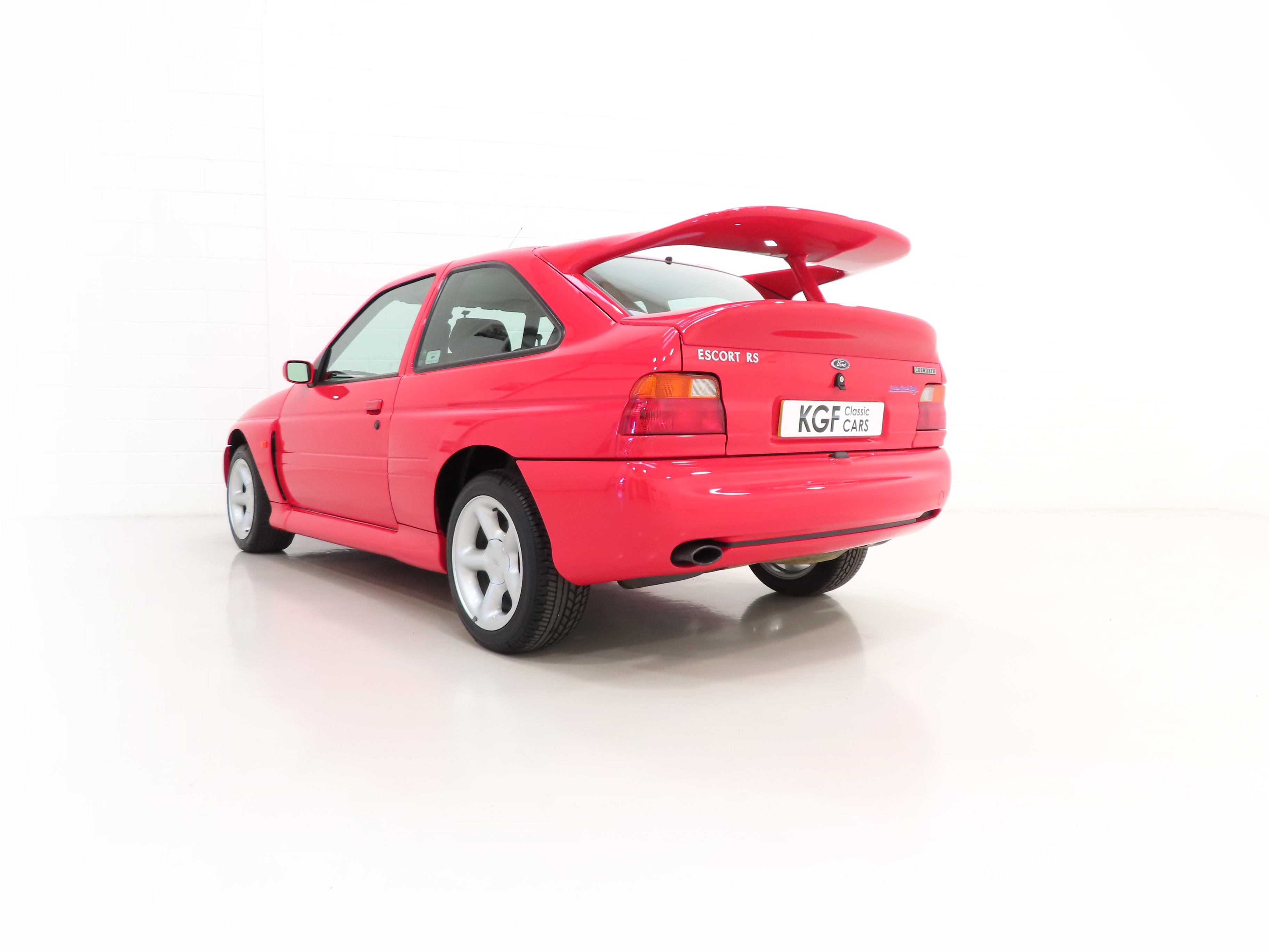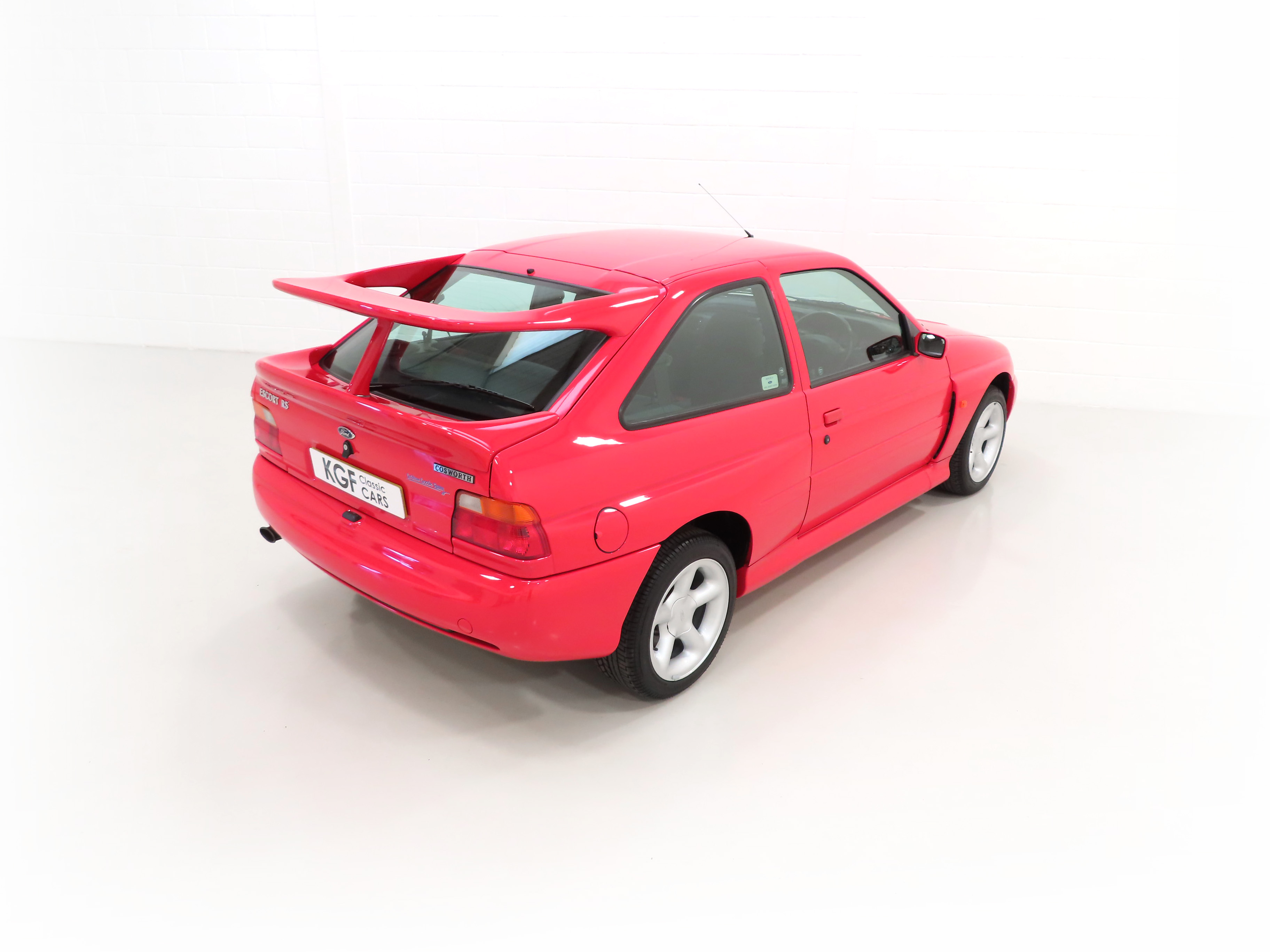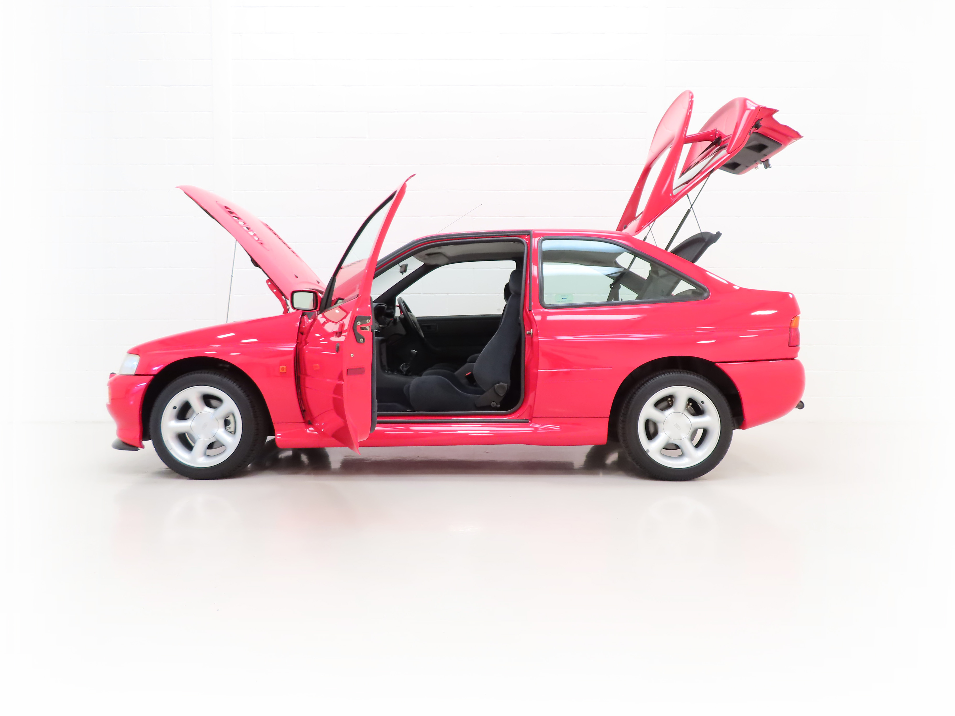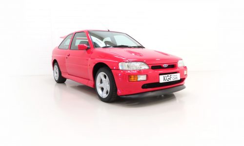 The Ford Escort RS Cosworth was a sports derivative and rally homologation special of the fifth generation Ford Escort. It was designed to qualify as a Group A car for the World Rally Championship. It was available as a road car from 1992-96 in limited numbers from Ford’s Specialist Vehicle Engineering, (SVE), Group. It combines the hand-assembled engine expertise of Cosworth and the coach-building crafts of Karmann. In order to accommodate the larger Cosworth engine and transmission Ford developed the car around the chassis and mechanicals of its predecessor, the Sierra Cosworth. A very rare car with only 7,145 examples being produced with this example being one of the last. (Source Wikipedia, 1995 Edition One RS Brochure and the RS Owners Club).