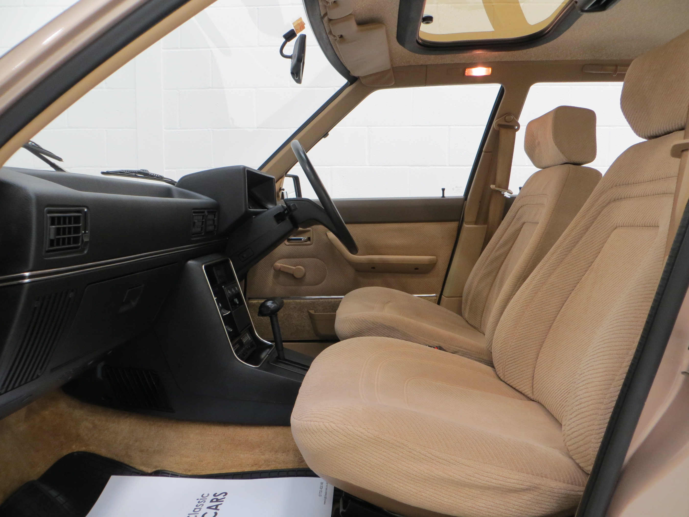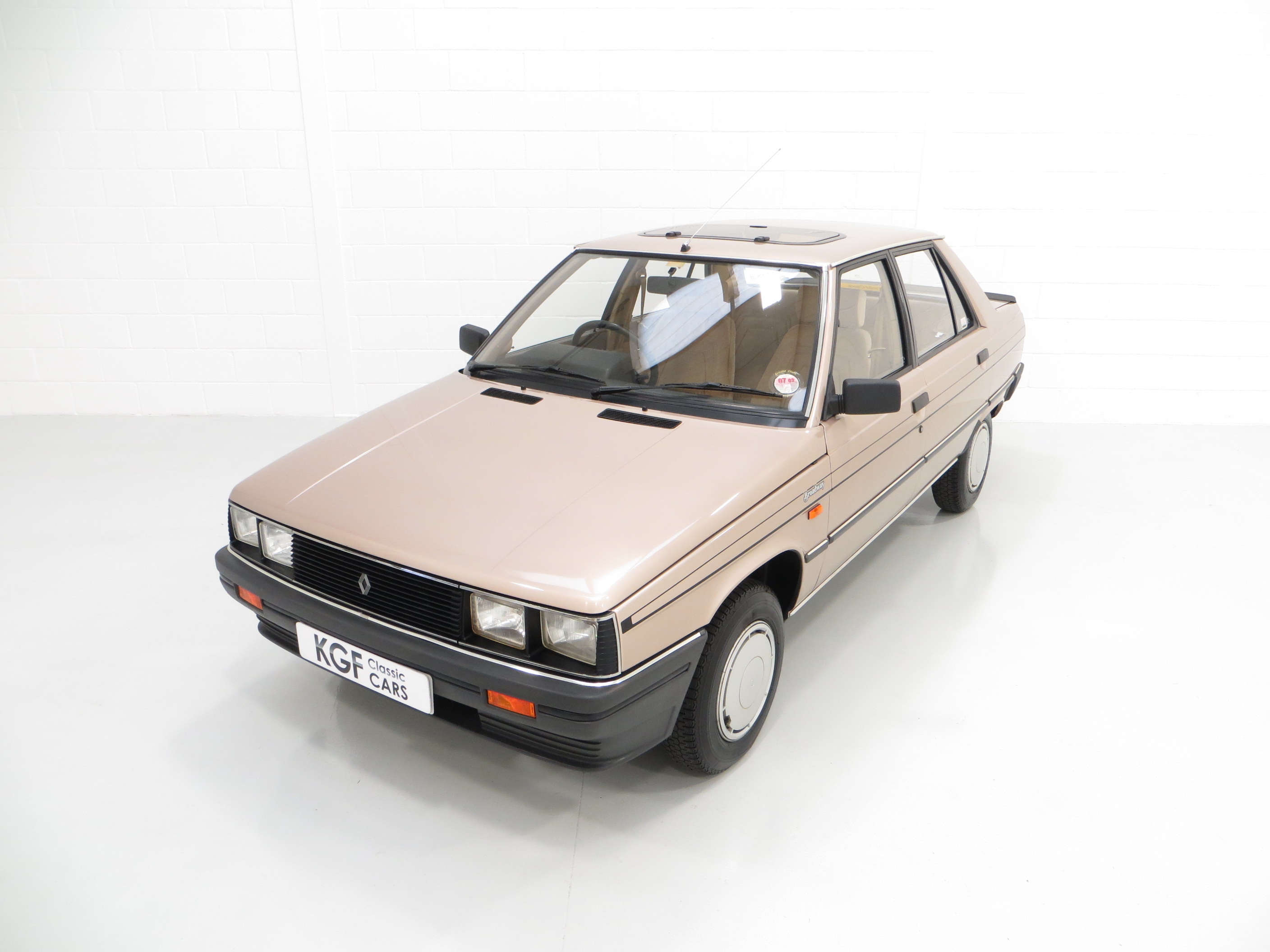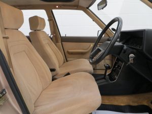 Such a preserved car is a rarity and this example is worthy of the Renault museum finished in factory original Super Gloss Aurora Beige, (Code 116). The side coachlining incorporating the Broadway motif and Broadway boot badge is perfect and all glass is Renault Saint Gobain with window etching. All trim, moulding and headlamps are superb and the clean underside is a purists dream having covered such few miles and always stored in a centrally heated garaged from new. The rear screen has the supplying dealer and other Renault stickers applied from new and the number plates are dealer fit too. Difficult to fault and almost production-line perfect.