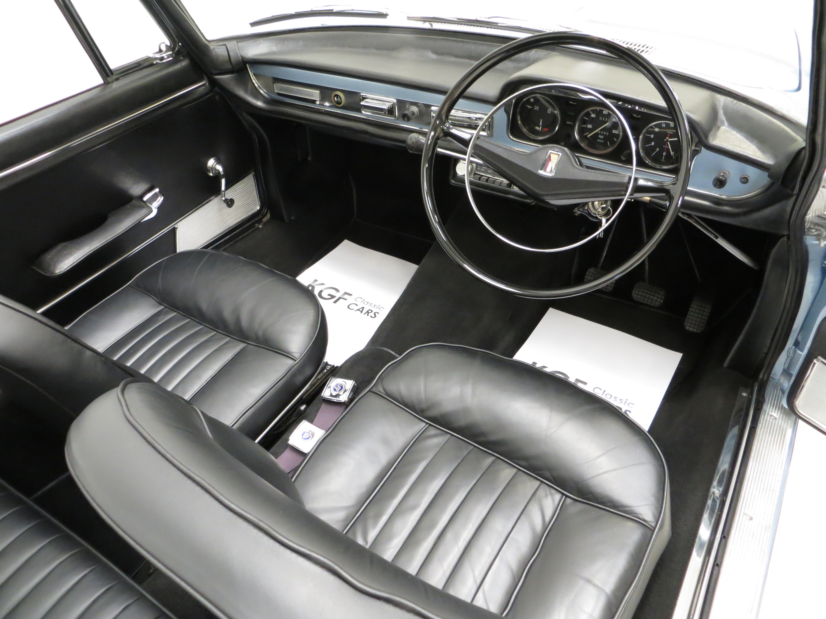 The original steel wheels remain dressed in the correct eight-hole Super-Luxe stainless steel hub caps which remain in excellent order with only slight age-related wear. All four tyres are matching, period style ands very expensive Michelin XAV 165 HR 15 items which were brand new in 2013 at a cost of £656.64! The boot area houses the original tool kit and full-size spare which still has the original cover and is fixed on top of the rubber matting. Thermostable power-assisted brakes feature a Hydrovac servo unit and Ferodo linings to offer very rapid stopping power, amazing for a 1968 car.
