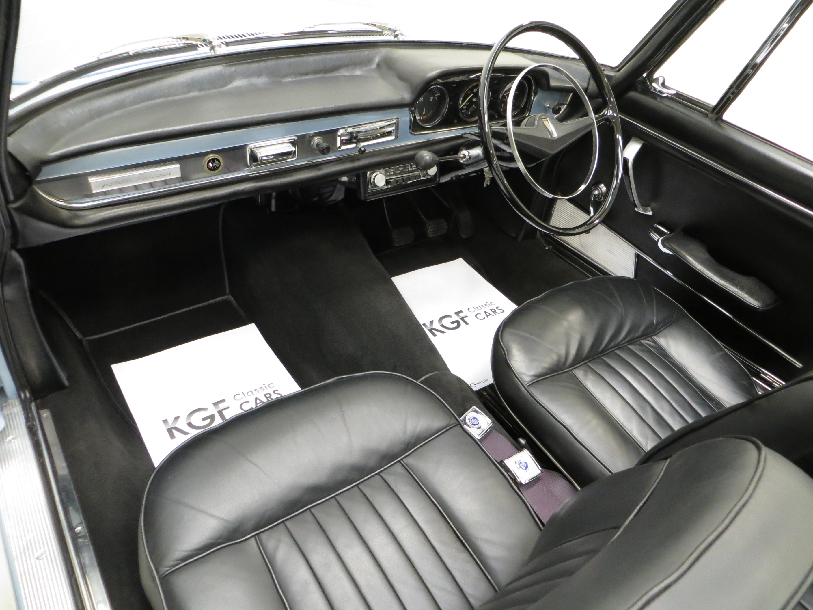 Rigid monocoque construction, two-door four-seat convertible body, convertible hood and tonneau, colour coded hard top, shatter-proof windscreen, quarter light openers, front driving lamps, Thermostable power-assisted brakes, three-section polished stainless steel bumpers, Pininfarina badges and emblems, flexible twin-spoke padded steering wheel with horn ring, headlamp flasher, padded non-reflecting safety dashboard, large-capacity lockable glove box, cigar lighter, Radiomobile push-button radio, tool kit, voltmeter, trip recorder.