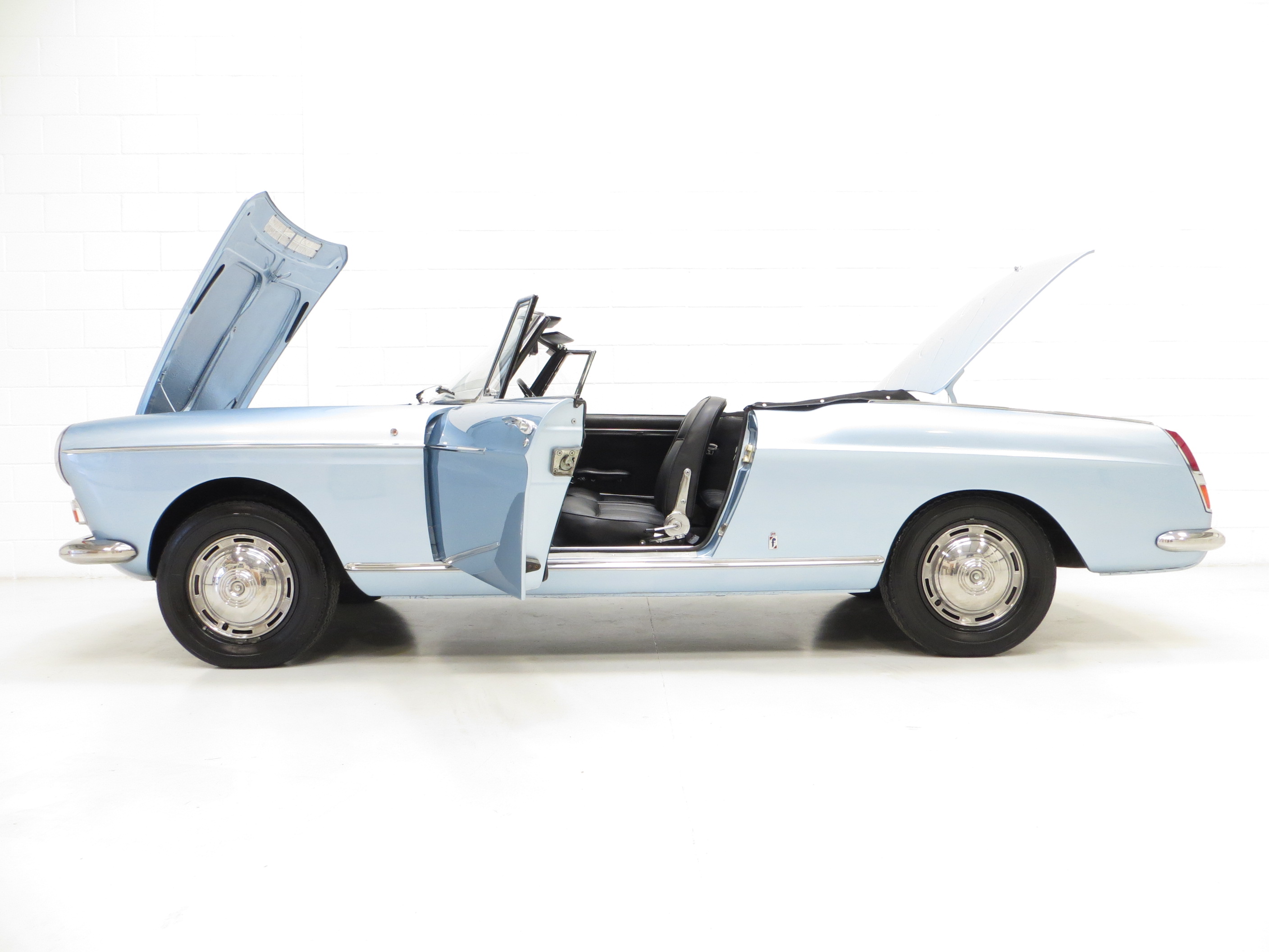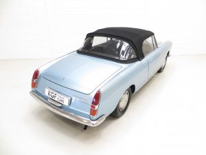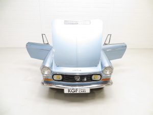 Designed by the legendary Pininfarina, the Peugeot 404 Cabriolet is work of automotive art and is regarded as one of the most beautiful cars of all time, even now ,55 years after first introduction in 1963. This 1968 example, built in the final year of production, is finished in stunning Silver Blue with matching hard top and black mohair hood. The paintwork having been restored from the original silver is beautifully polished to accentuate the chic, graceful lines of this four-seat drop top. The stainless-steel bumpers and other chrome trim are in very good order, and the original ornate door handles show only light pitting. Original Marchal headlamps and Cibie driving lamps remain fitted, and the delightful red/white side repeaters are correct for a 1968 car. A new expensive mohair hood has been fitted and the original hard top remains with the car, which has been stored separately and will require refurbishment in order to match the condition of the car. A very rare genuine RHD example and breath takingly attractive.