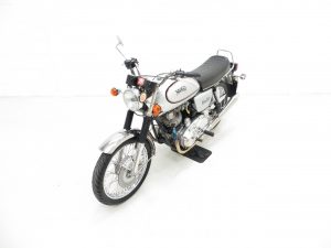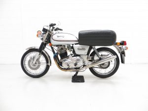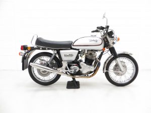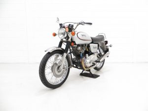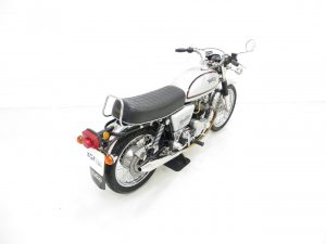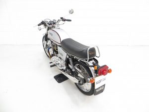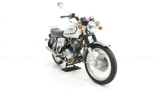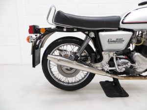 Chromed rims with plated steel spokes laced to aluminium hubs are clean and very bright with minimal aging evident only upon close scrutiny. Matching quality brand Avon tyres, 90/90 19 upfront and 100/90 – V19 at the rear show ample tread and good rubber condition. This Mk3 model features one of the most significant revisions over previous models, in the form of hydraulically operated disc brakes to both front and rear wheels with Norton-Lockhead callipers providing excellent stopping power.