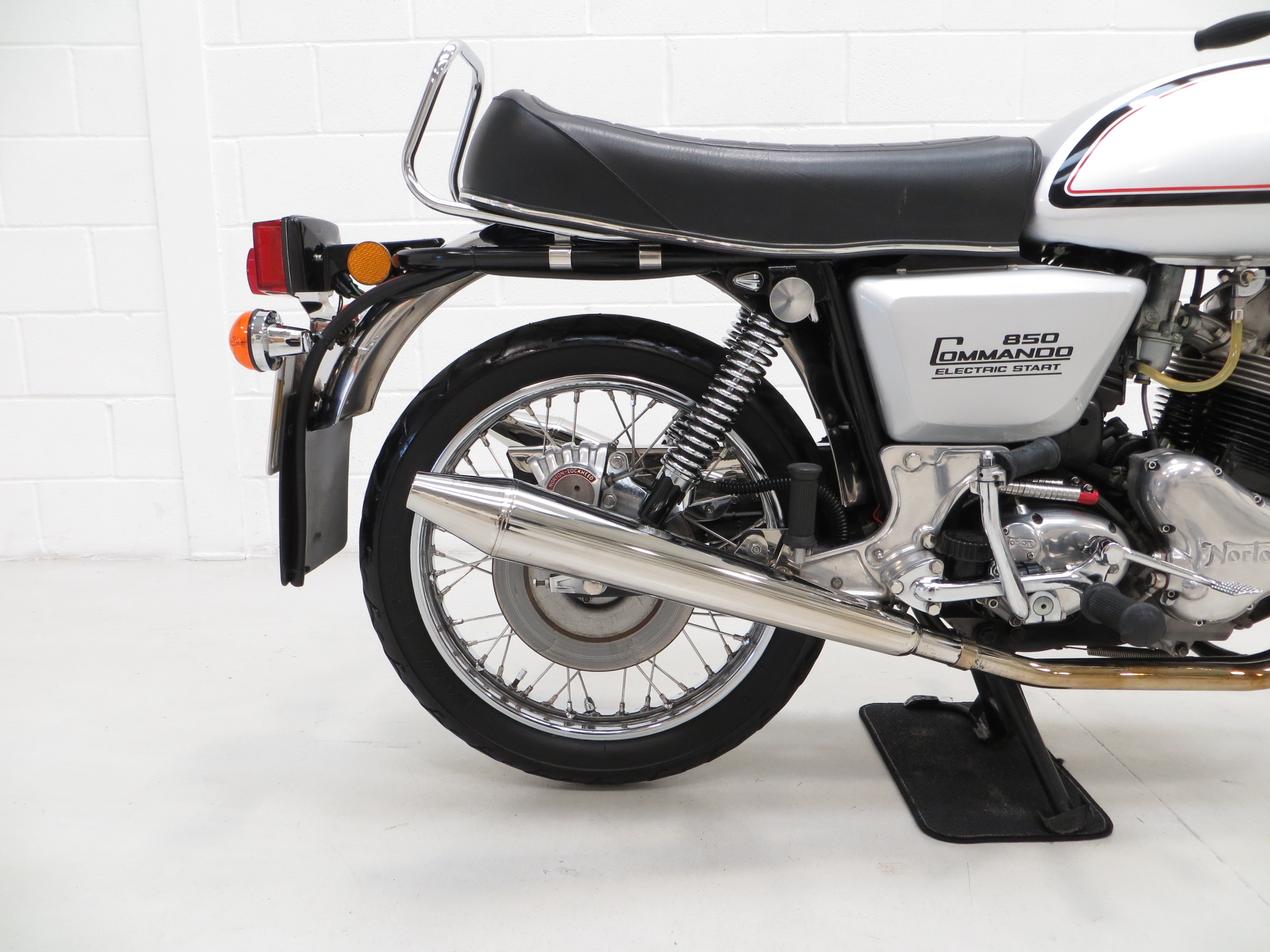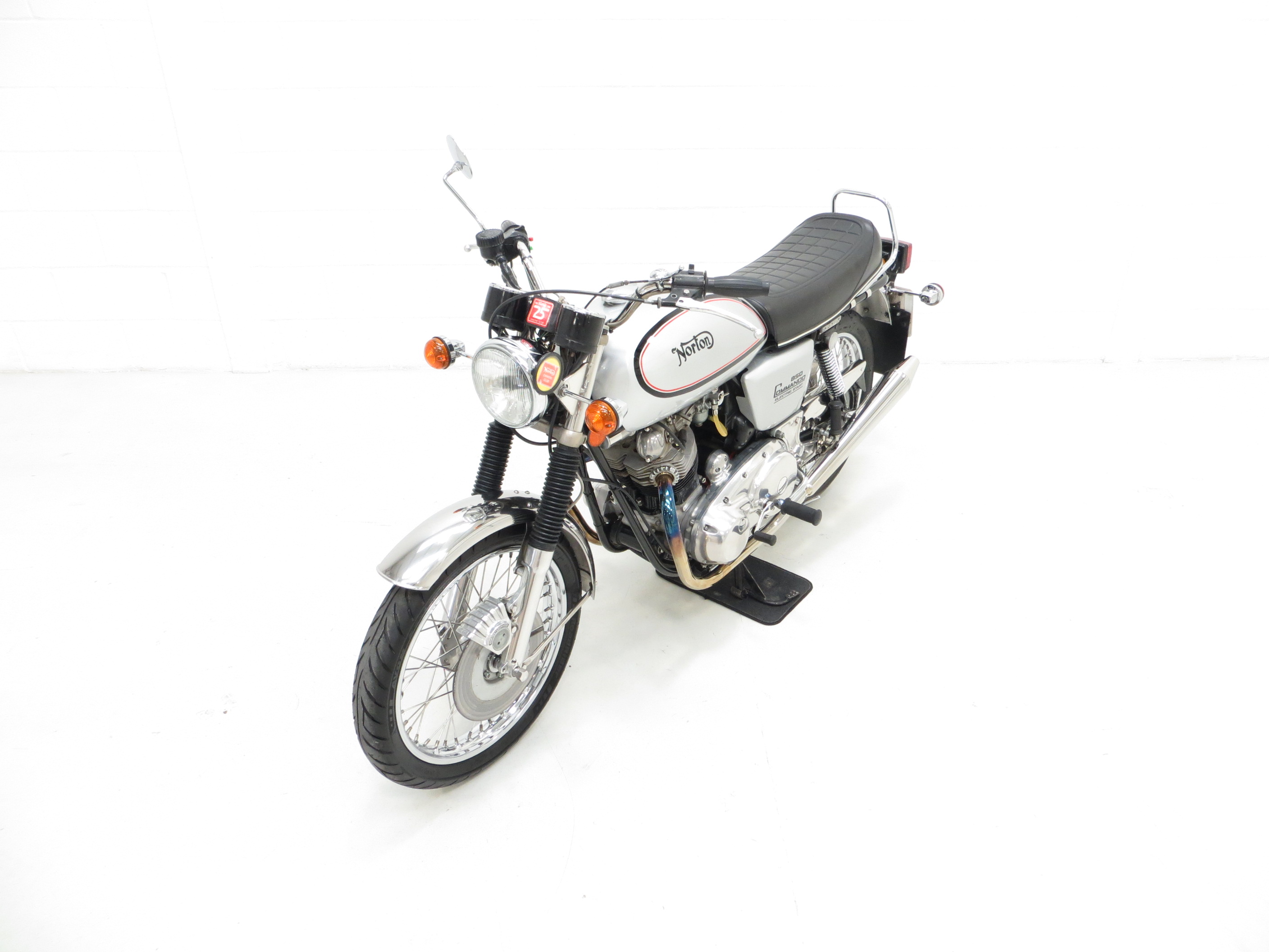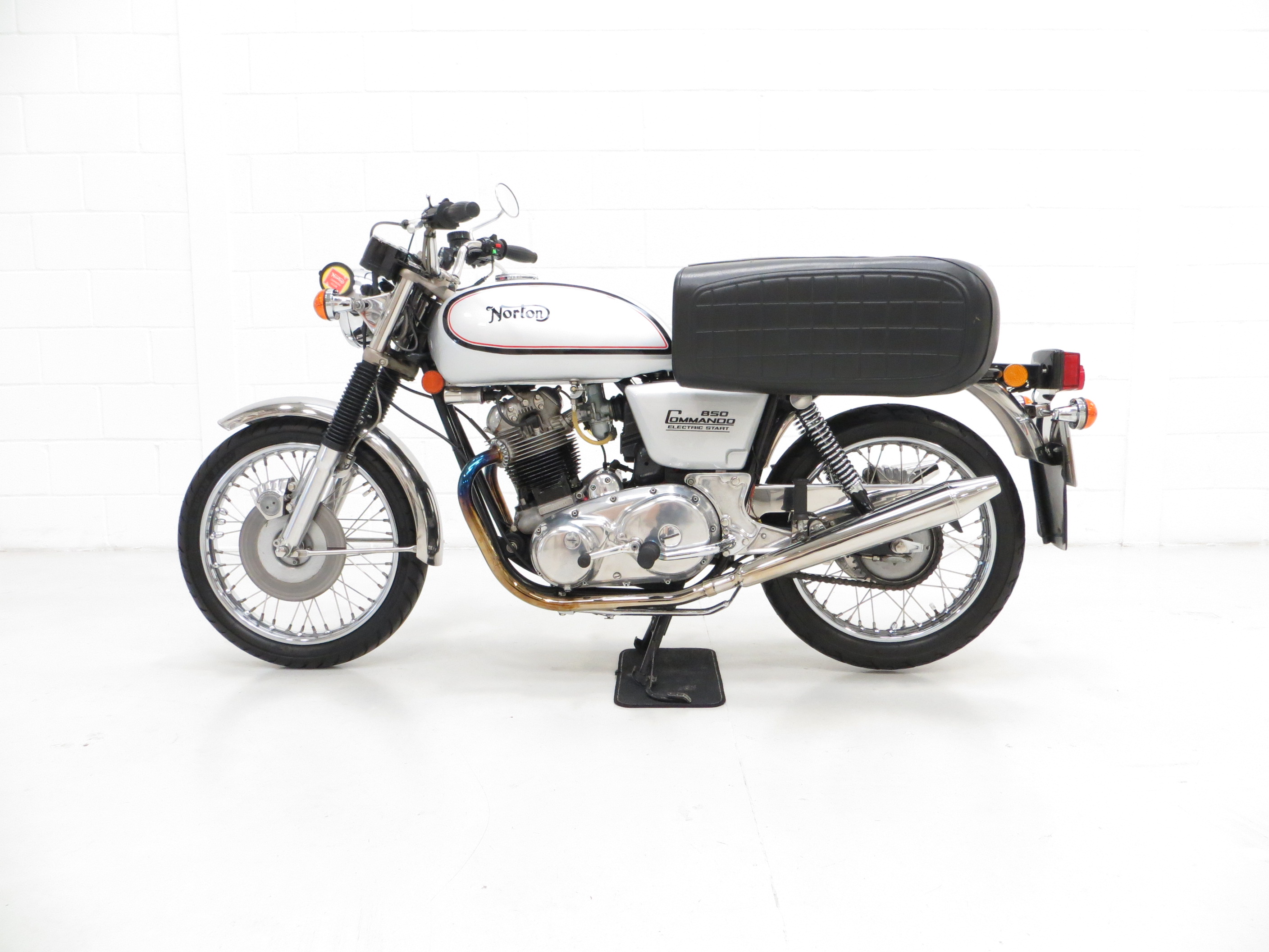 This muscular Commando 850 Interstate model, built to succeed in the US market, featuring left foot gear change and the large 5.5 Gallon tank was designed specifically to appeal to customers in the States, where long range touring is of considerable importance. The appearance of this motorcycle is fantastic with the large Silver tank displaying a bright polished shine with correct Norton lettering and decal. There are very light rub marks to the rear of the tank, barely visible, and the frame is in superb order with the stock stamping clearly legible. All original Norton trim pieces, rubbers and lights are in excellent order with only light aging apparent to the gauge cowls and some switchgear. The stainless steel and chrome pieces are original fitment and remain bright with only light markings. The original material to the large contour seat is in superb order with only one tiny nick to the rear. An unrestored bike that has been used, enjoyed and cherished by the same owner since it was five years old!