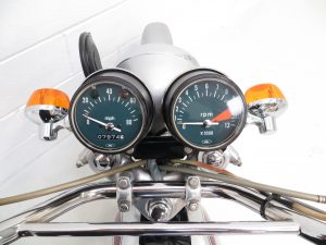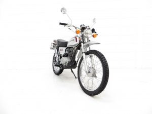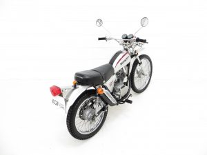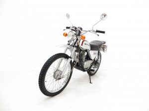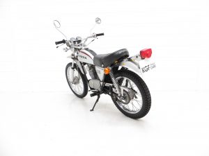 First registered on the 1st March 1975 this rare UK bike is one of Honda’s earliest trial bikes and represents an iconic piece of Honda history. The current custodian, Mr Chris Weymouth owned such a motorcycle in 1974 and after just two weeks of ownership was forced to sell it after disapproving parents did not agree with the choice of transport! Despite this and fast forward 39 years to 2013, Chris managed to acquire another! The hunt was exhausting with so few ever being available so when this example was offered he had to buy it, it was just like his one in 1974 and in perfect condition. Lack of use and the itch firmly scratched now means the bike is available for the next lucky custodian. Offered with a collection of MOT certificates, invoices and a workshop manual. Three keys with one operating both the ignition and steering lock.