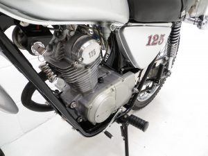 An all alloy 4-stroke single cylinder OHC 2 valve engine of 122cc produces 12hp at 7900rpm and performs with typical Honda precision. The last service invoice by St Neots Motorcycle Company was at 7,961 miles and the indicated mileage is now 7,974. The engine displays minor marks which do not detract from the overall appearance of the bike and is beautifully original. This engine number is correct and clearly visible. The 5-speed transmission operates perfectly with a light clutch action. Great fun and very useable.