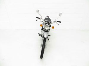 Factory spoked wheels still display a mirror chrome finish with minor imperfections and correctly sized 2.75-21 front and 3.25-18 rear tyres with ample tread are fitted. Drum brakes front and rear provide adequate braking.