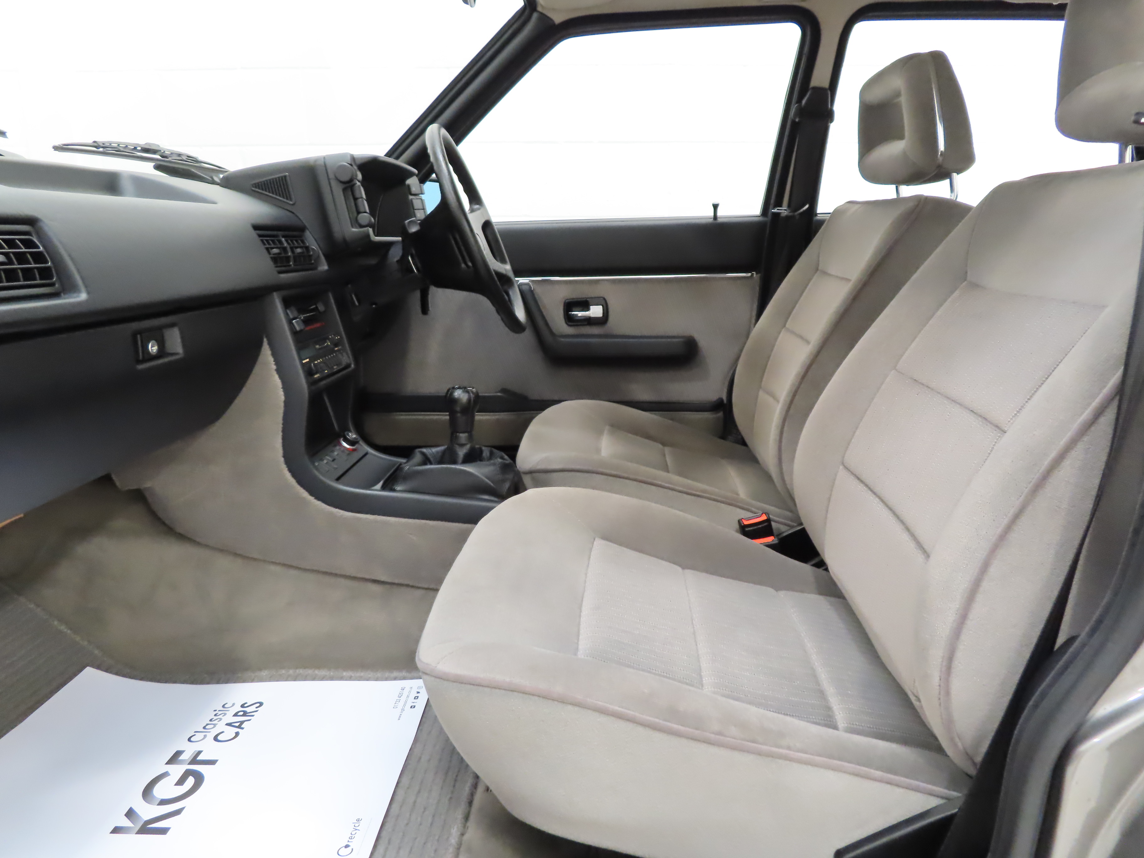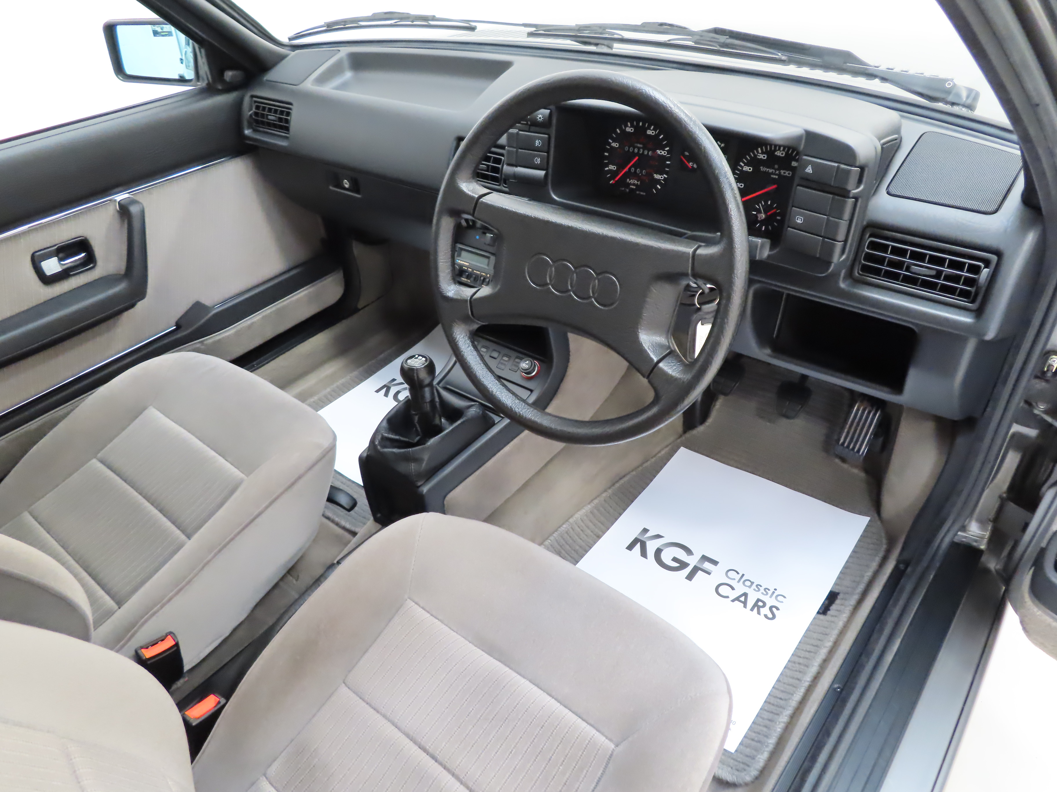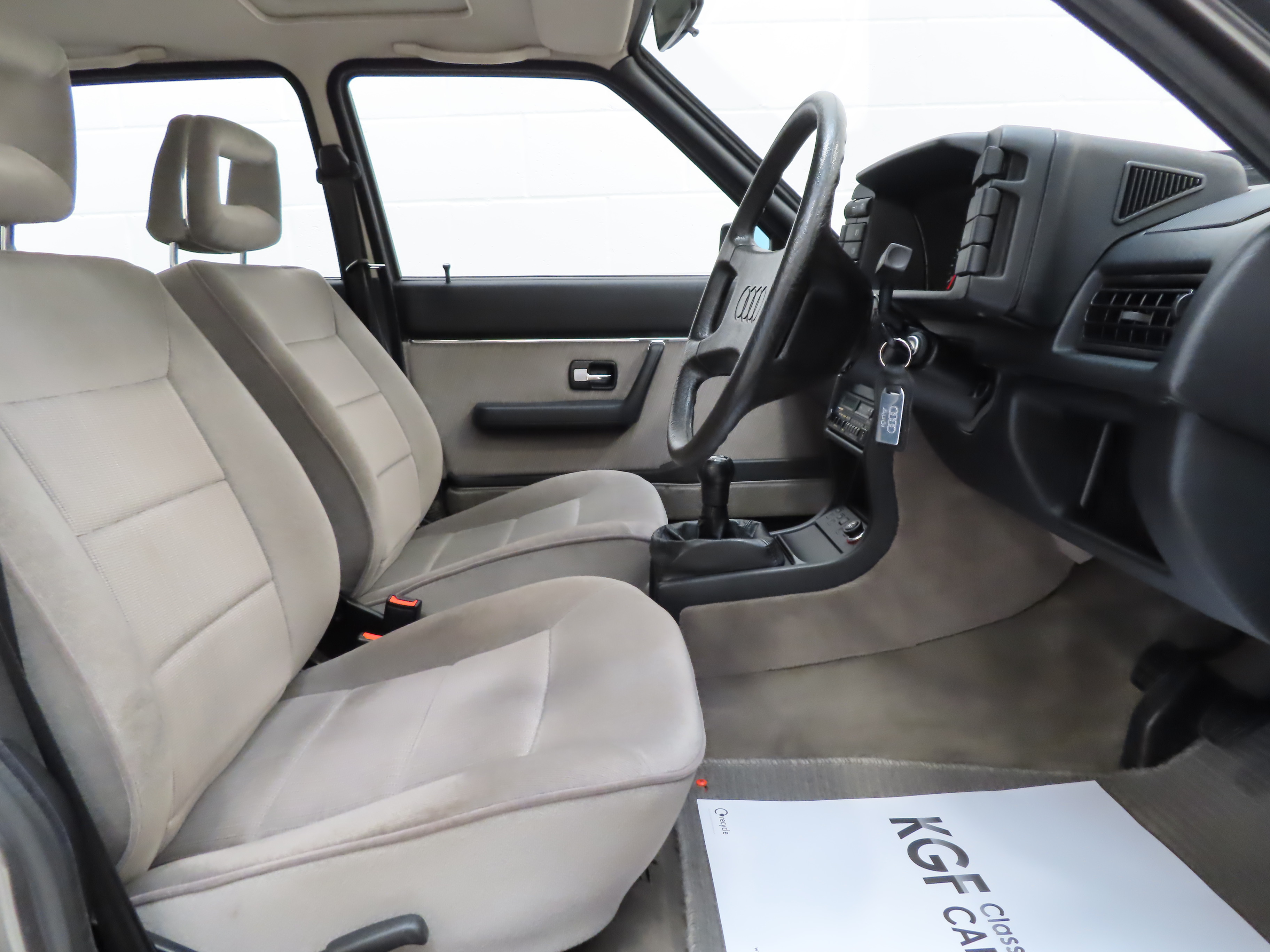 The plush CD interior of this amazing example is representative of the remarkably low 8,396 miles covered and is in pristine condition throughout. The original Savoy Velour upholstery in Quartz colour scheme, (Code JK), is spotless with no wear or damage to the fabric whatsoever. The seats are firm and retain all shape and the matching door cards are as new. The carpets are untouched having been protected from brand new by Audi floor mats and the headlining is perfect. All functions operate seamlessly including the original Blaupunkt Cambridge SQM26 stereo cassette. Likewise, the spotless load space boasts an unmarked rubber mat underneath which the boot floor is as new as well as the original factory build label and yellow Minispare warning label to the boot lid underside. Clean, fresh and totally unspoilt.