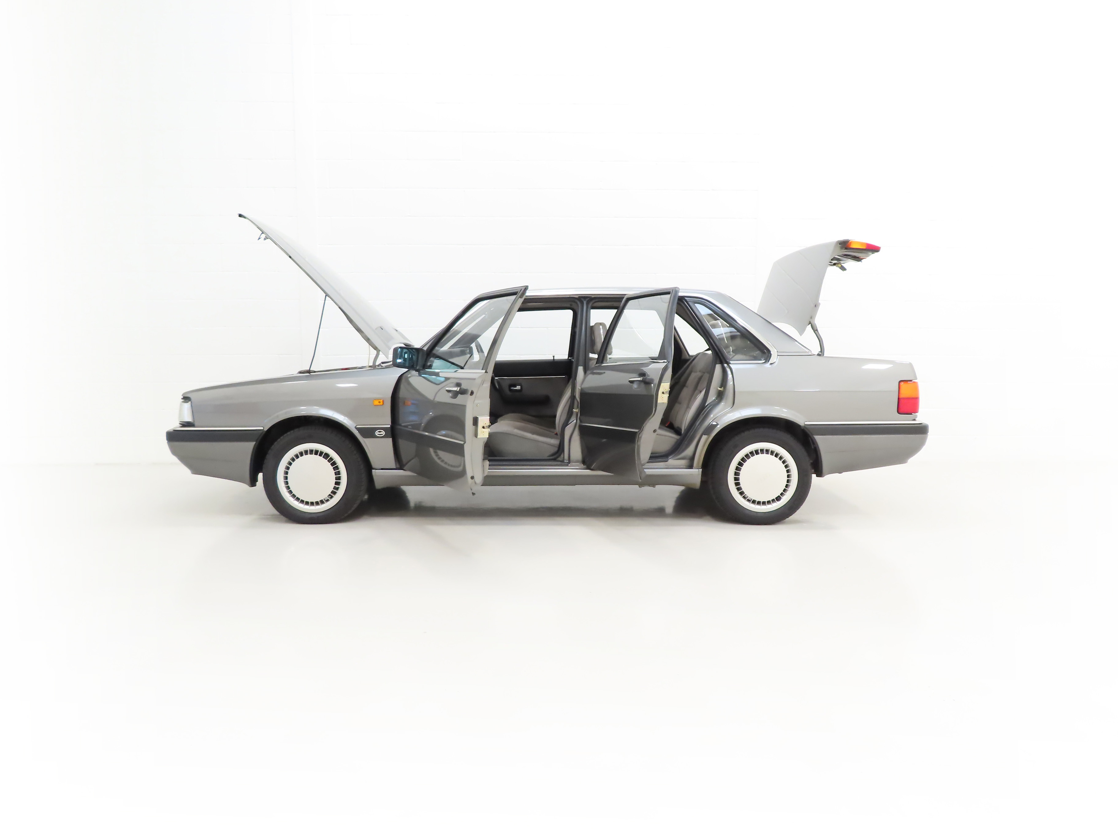This exceptional and very rare Audi 90 CD has covered just 8,396 miles from new and has been part of the prestigious Audi Heritage Collection since 2013 where only the finest examples gain placement. Finished in factory original Stone Grey Metallic, (Code U8), the pin straight bodywork and paint finish are simply outstanding with no markings worthy of mention other than a small mark to the bonnet. All beautifully made trim sections, rubbers, lights and badges are virtually as new with a very faint rub to the offside front corner bumper plastic. All glass is factory etched and the supplying Audi Main Dealer number plates and tax disc holder remain. An exceptional museum worthy example.